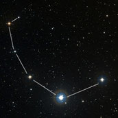 auf den ersten Blick sind fünf Sterne erkennbar, vier davon sind wie ein Parallelogramm angeordnet - mit etwas Geduld zeigen sich noch zwei schwächere Sterne - so lässt sich die 3 einigermaßen nachvollziehen, aber schön ist anders |