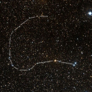 ein nach Nordwesten schwimmender Schwertfisch - insgesamt acht Sterne bilden das Muster, zwei Sterne bilden die nach Süden zeigende Rückenflosse, drei schwächere Sterne bilden das schwertartige Rostrum |