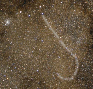 direkt leicht neblig sichtbar - indirekt dann eher granular und wie ein Semikolon gezeichnet mit Bauch nach Norden - nach Süden wirkt der Haufen etwas diffuser |