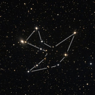 sechs Sterne, verblüffend ähnlich dem Sternbild Delphin - die Schwanzsterne stehen gefühlt in etwas weiterem Abstand zueinander |