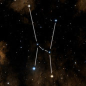 auffällig, wie eine Speerspitze - vier Sterne bilden diese Spitze nach Nordwesten, zwei den Schaft - ein Schwertfisch ist aber auch vorstellbar, zwei schwächere Sterne innerhalb und außerhalb nordwestlich von der Spitze verlängernd diese noch etwas |