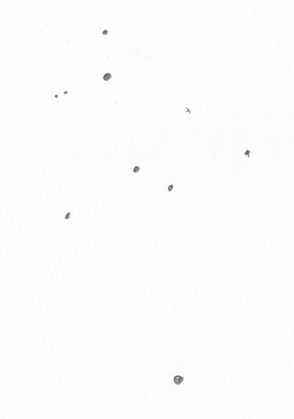 gut acht bis neun schwache Sterne, locker verteilt, sind erkennbar, drei davon etwas heller |