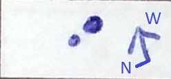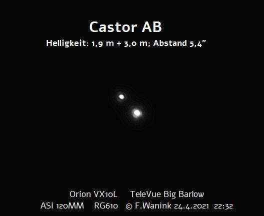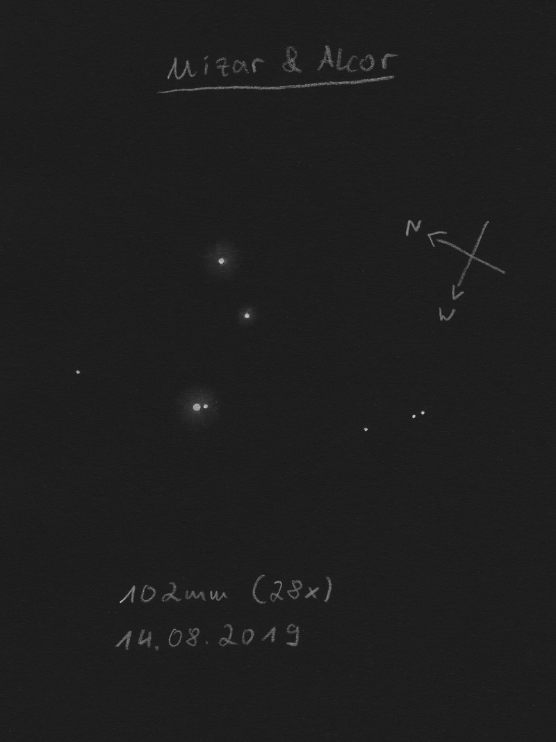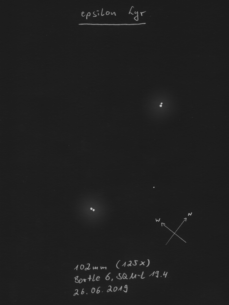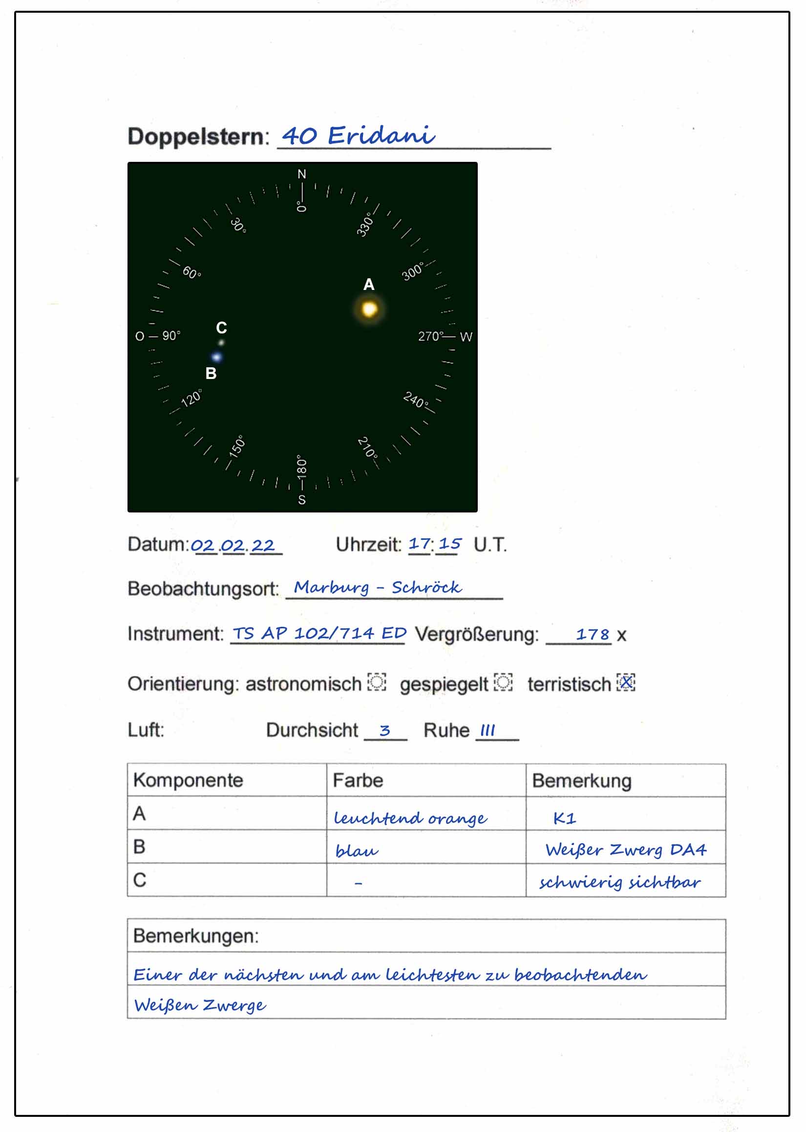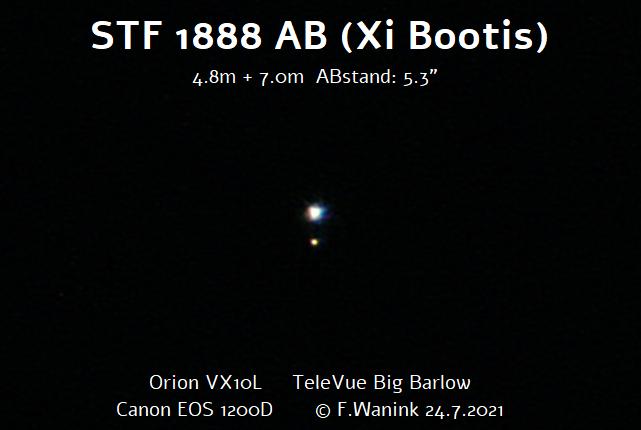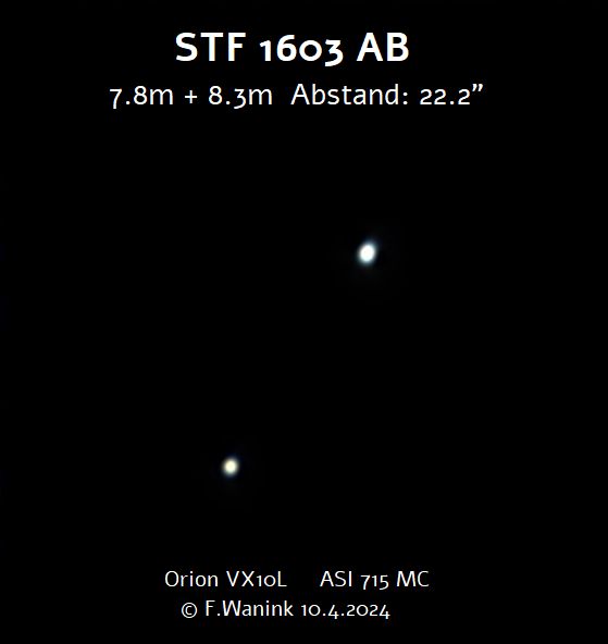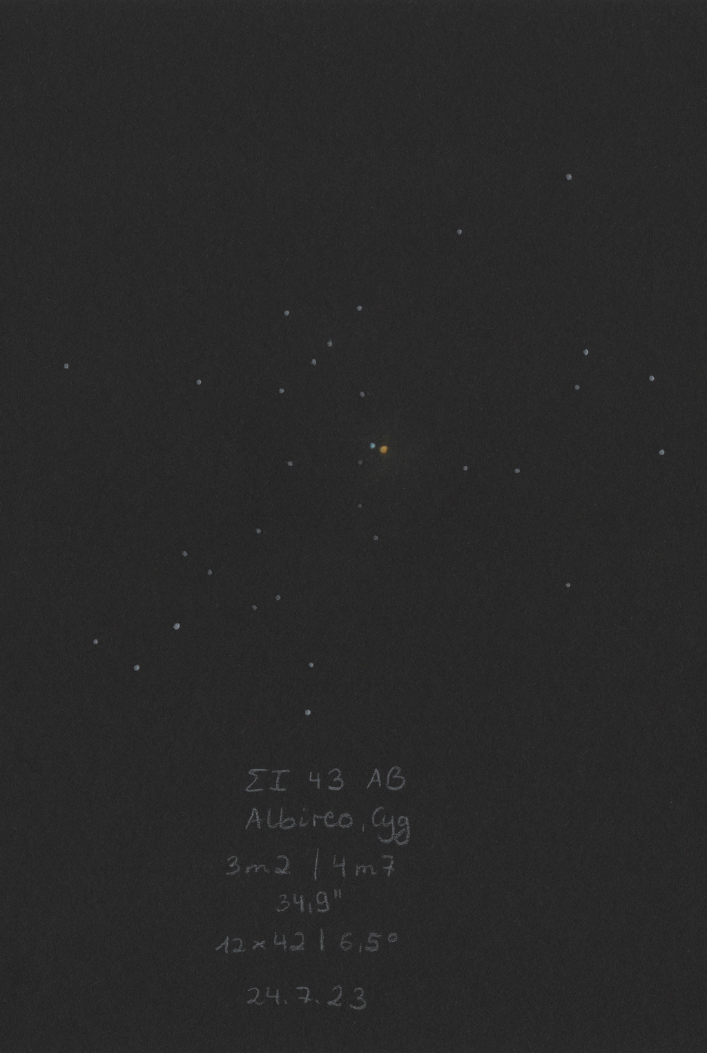 AB: Weit getrennt. A orange-rot, B kein bestimmter Farbeindruck. fst 5m5, zeitgleich mit obiger 6x24-Beobachtung. |
