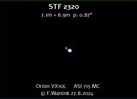 AC: 20.09.2020: Schöner Abstand mit deutlichem Helligkeitsunterschied. Leicht gelblich & weiß-bläulich. |