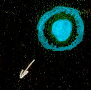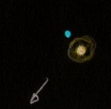 AB: ein sehr auffälliger Doppelstern mit einem schönen Farbkontrast - A strahlt gelb, das kurz davor steht, ins Orange über zu gleiten - B wirkt im Kontrast aquamarin, so dezent wie eine typische PN-Farbe |