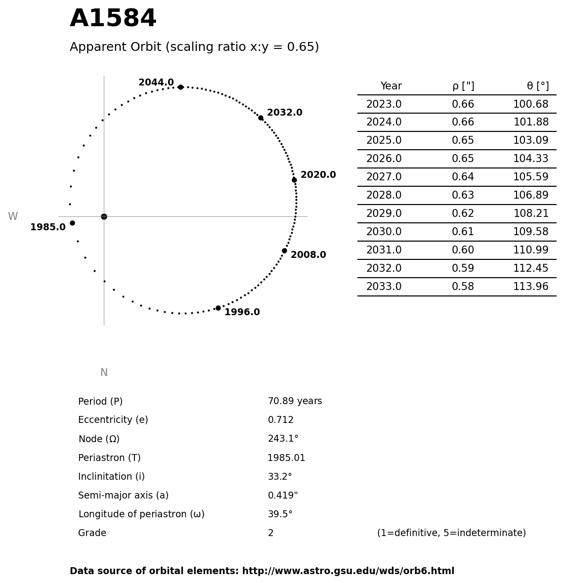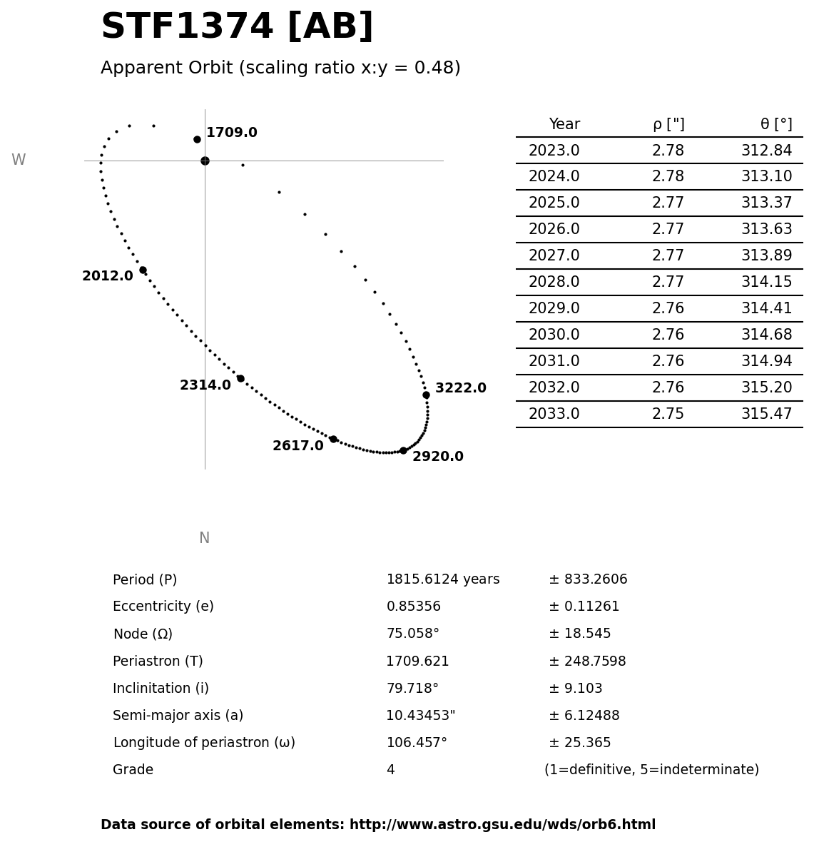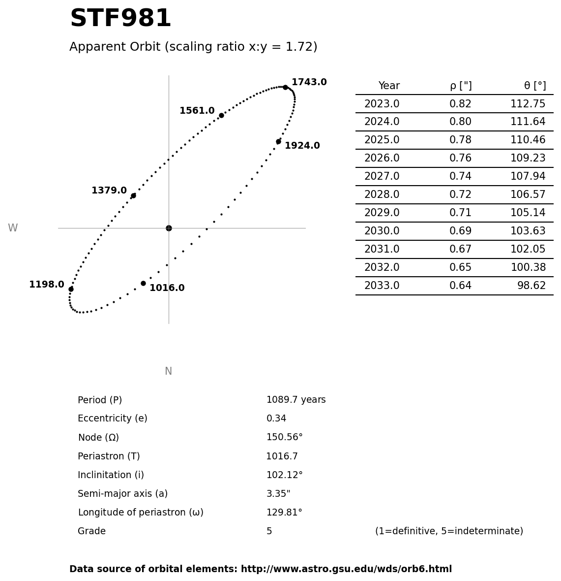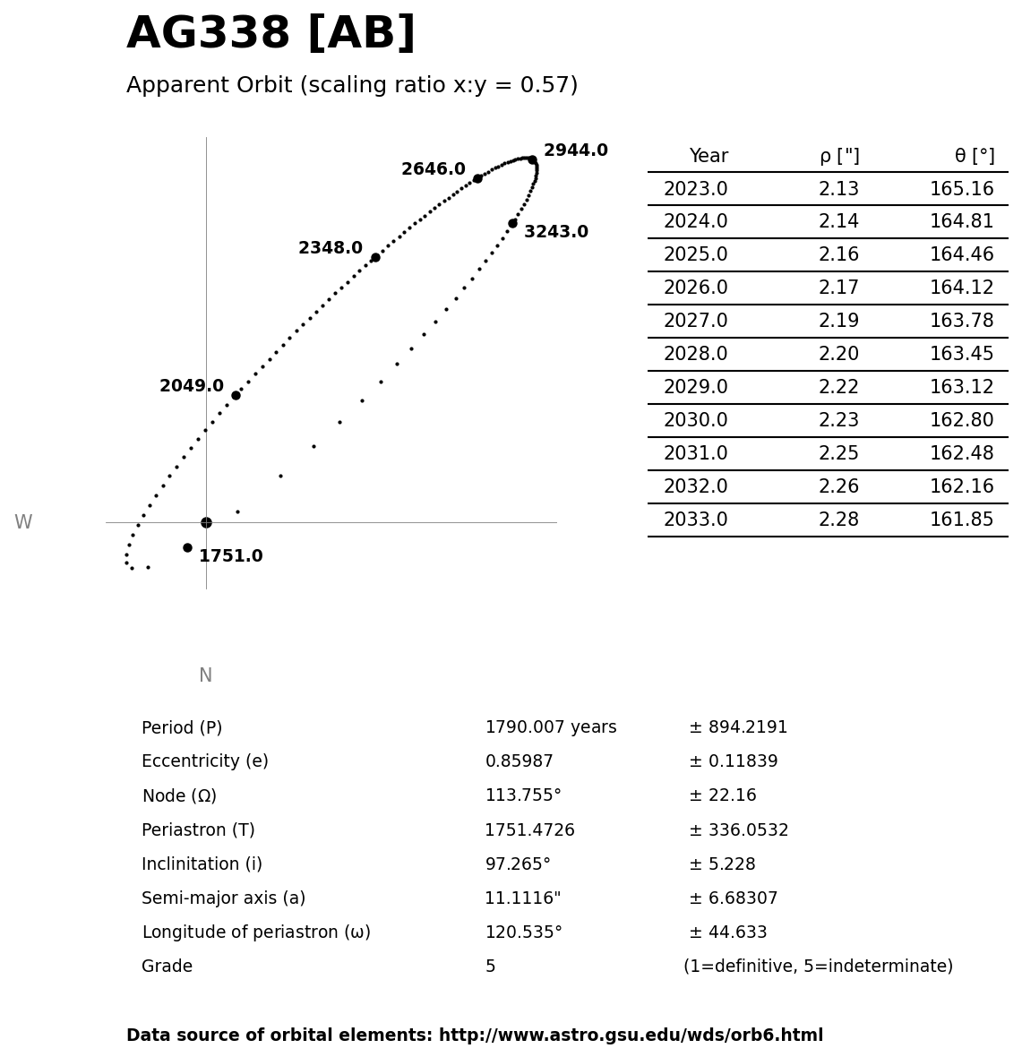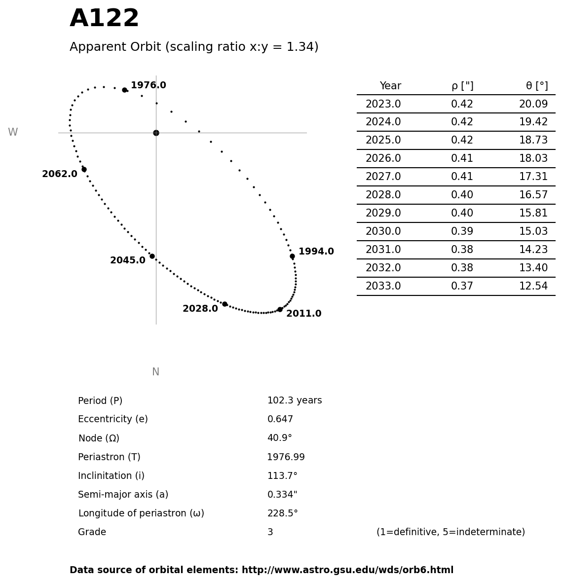 Suspected at 205x and 333x but needed higher magnification to see it. B is a very small point, with seeing, in the first diffraction ring. ~1" and ~3 delta mag |
