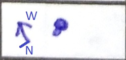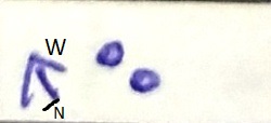 bei 72x zwei gleichhelle Sterne, die weit getrennt auseinander stehen - A im NO ist leicht gelblich, B mit einem leichten Schlag ins Blaue, sprich weißblau - dadurch zarter Farbkontrast - beide Sterne sind schön hell und auffällig im Umfeld |