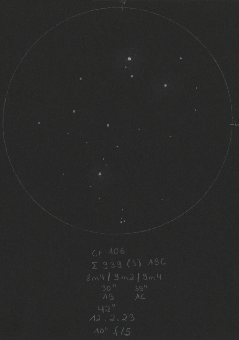 09.02.2019: AB, C & D einfach trennbar, wobei die C-Komponente ziemlich schwach erschien und nur als kleines Pünktchen sichtbar war. Südlich befindet sich noch die hellere D-Komponente. |