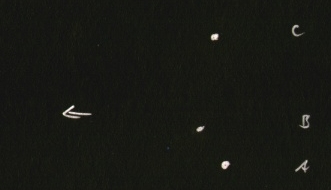 18.05.2007: Einfach mit dem C8 bei 80facher Vergrösserung. A ist schwach orange. B ist leicht bläulich. |