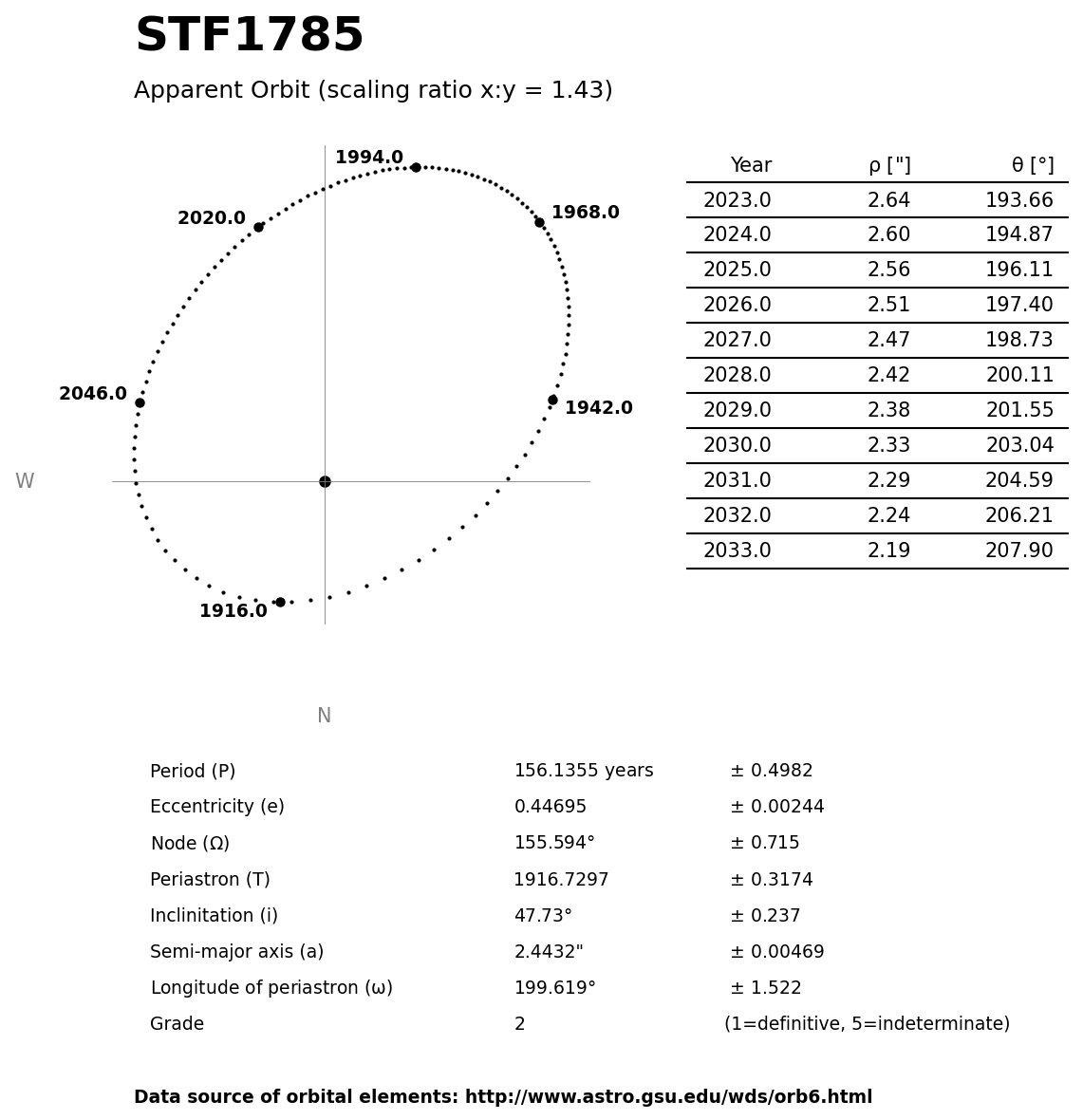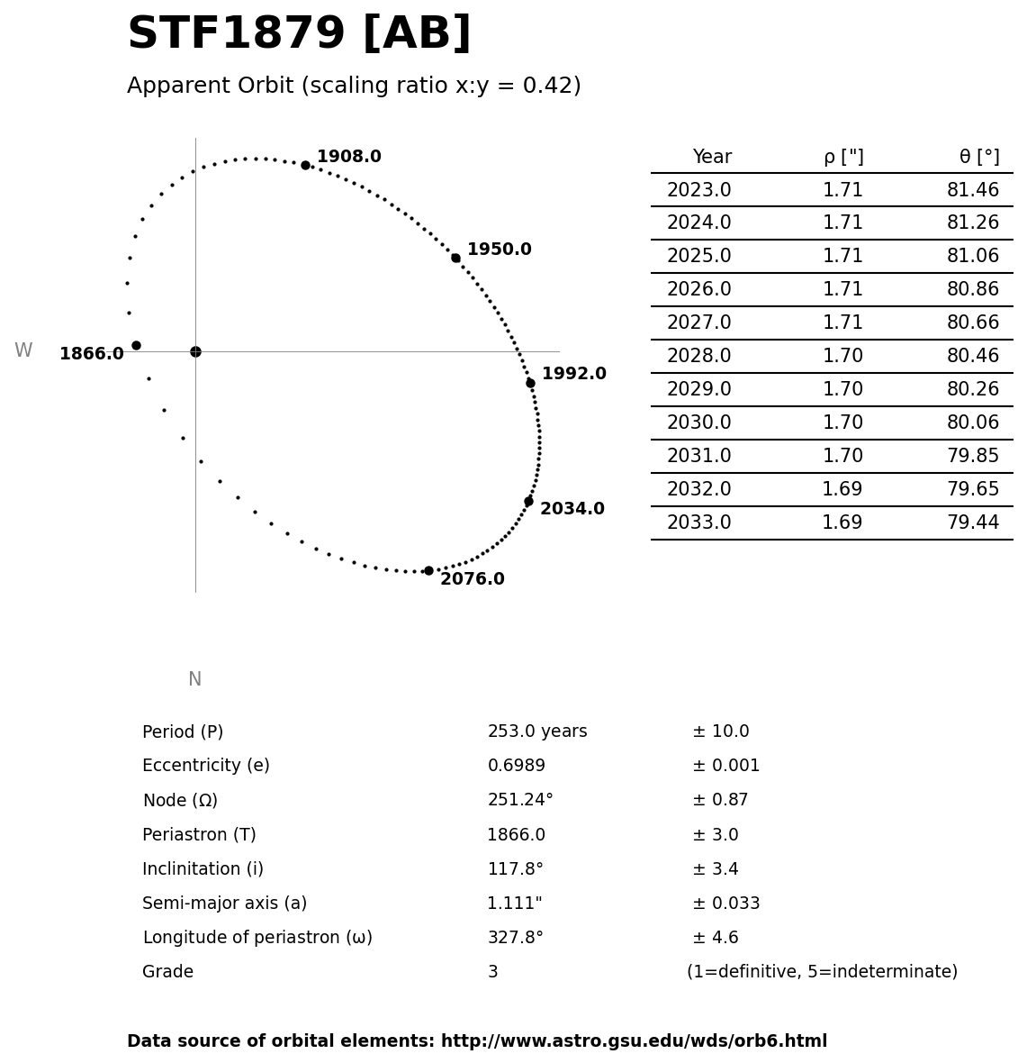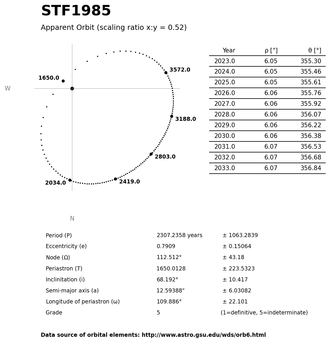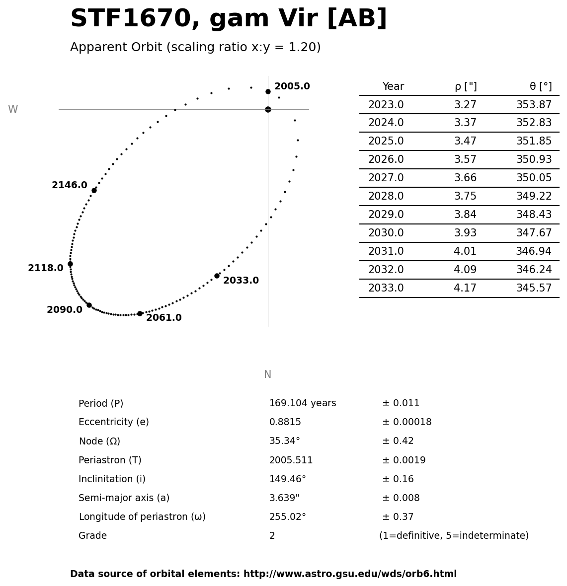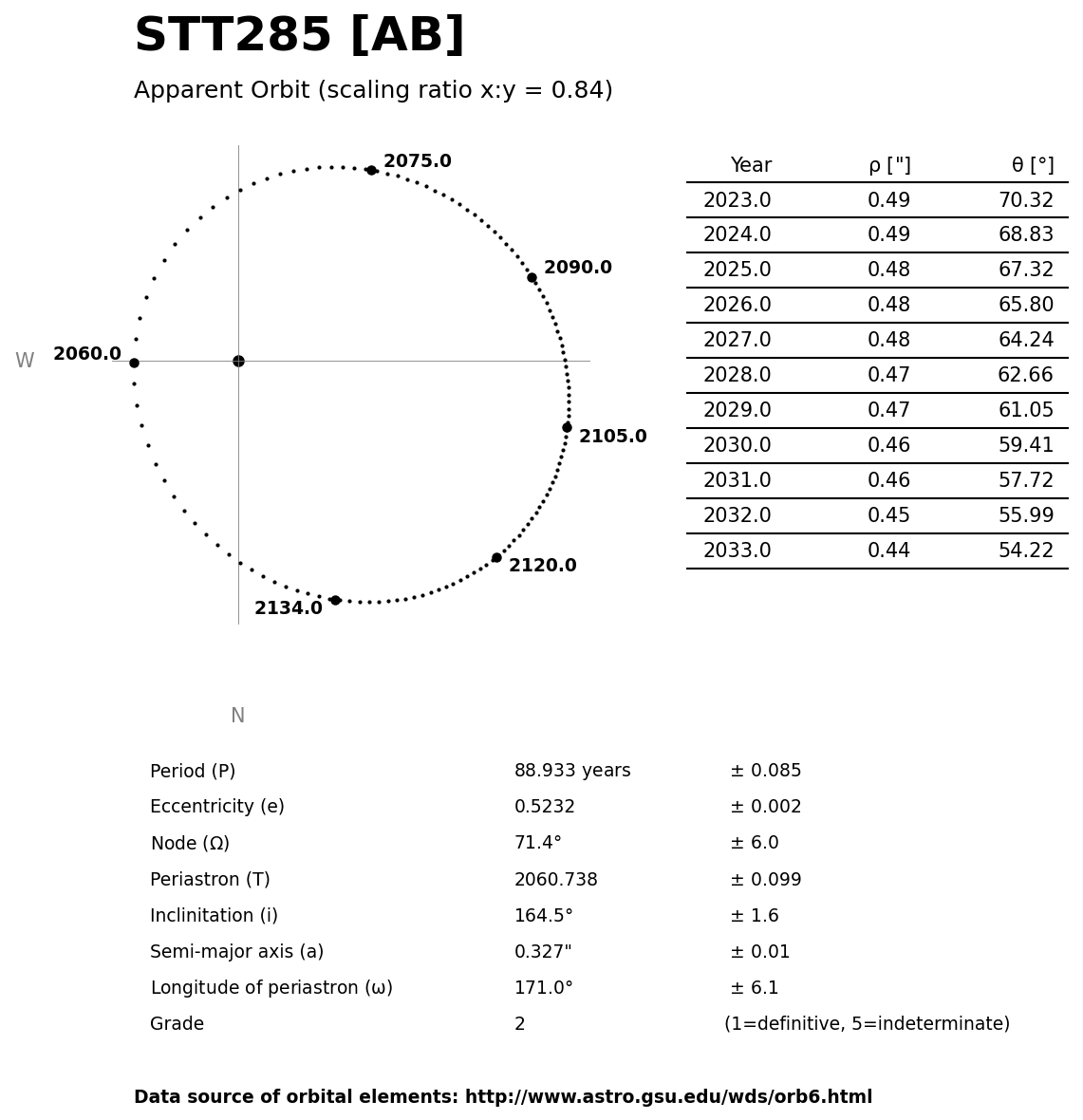 Nice clean split, more than hairline, white stars, significant mag difference. With apodising mask. Currently at apastron, will make nearly half turn by 2040. |