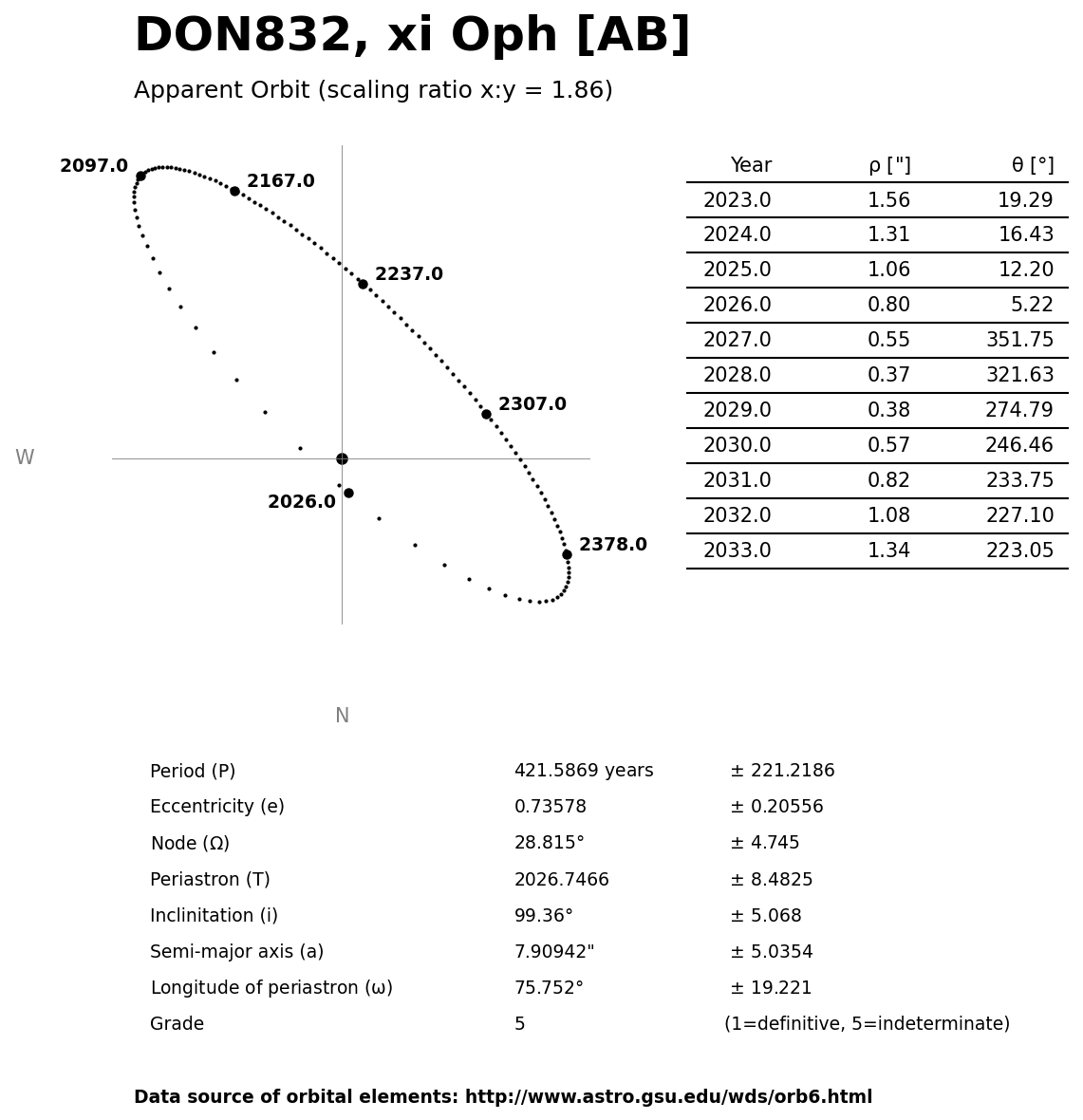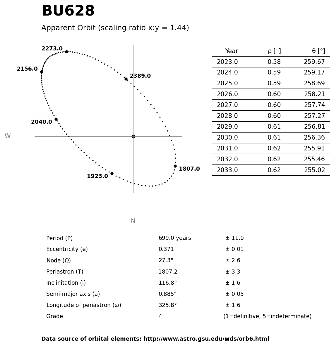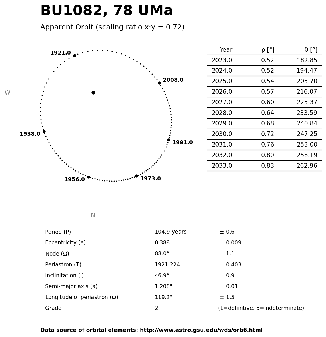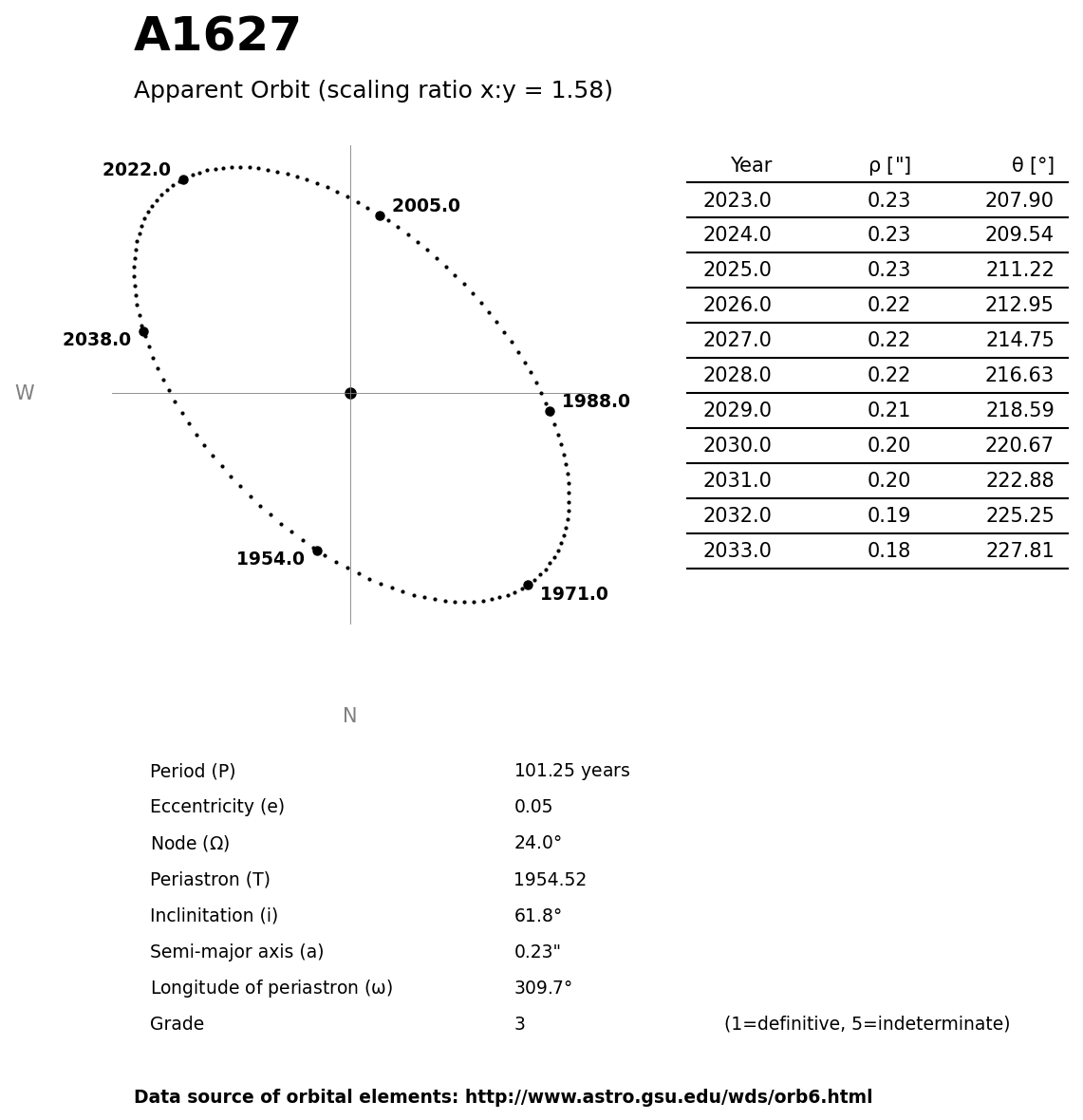 Nice clean split, more than hairline, white stars, significant mag difference. With apodising mask. Currently at apastron, will make nearly half turn by 2040. |