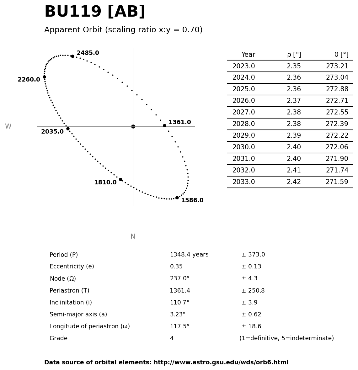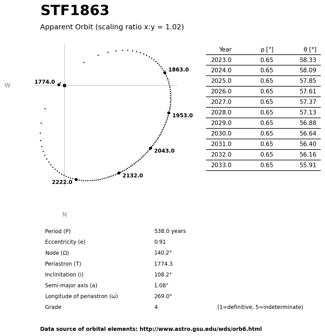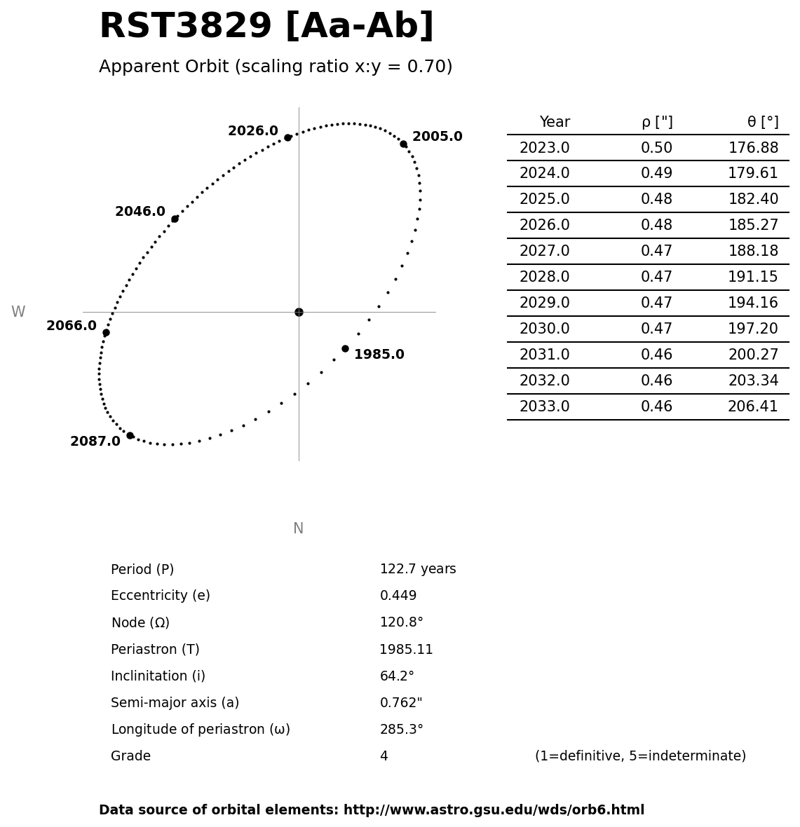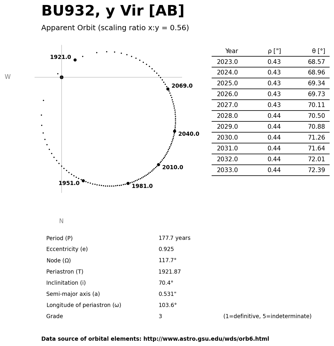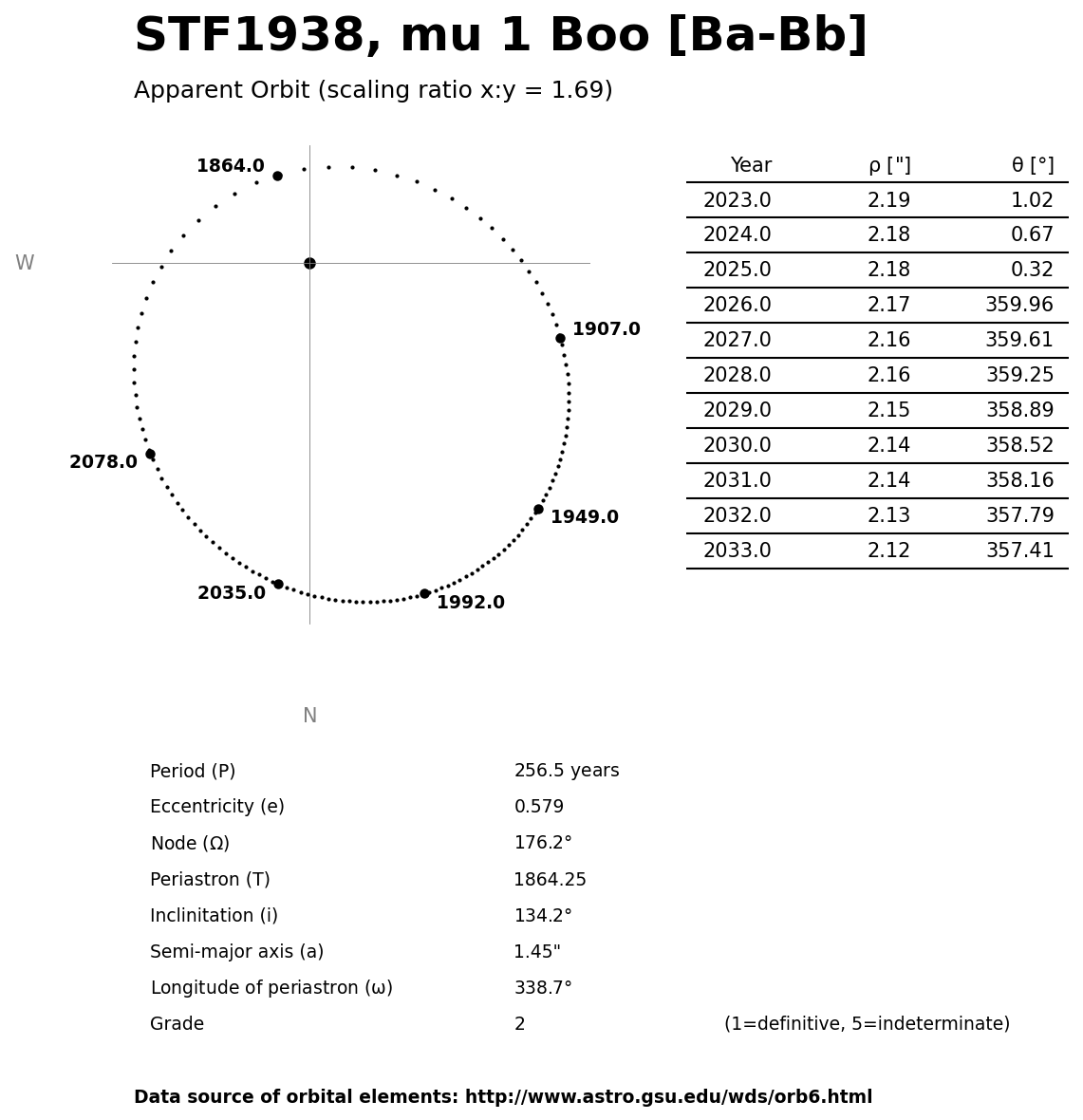 Nice clean split, more than hairline, white stars, significant mag difference. With apodising mask. Currently at apastron, will make nearly half turn by 2040. |