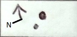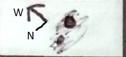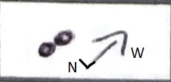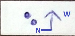 Fine pair, faint, near equal, can just see above the sky background [not physical] |