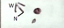 AB: hier habe ich lange gebraucht, bis ich die B-Komponente schwach aufleuchtend erkennen konnte - B steht relativ nah südöstlich von A und wird fast vom Glanz der Hauptkomponente überstrahlt |