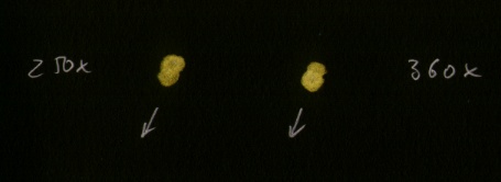 Bei 200x und 300x nicht zu trennen. Ich nutzte einen 120/600mm Achromaten. |