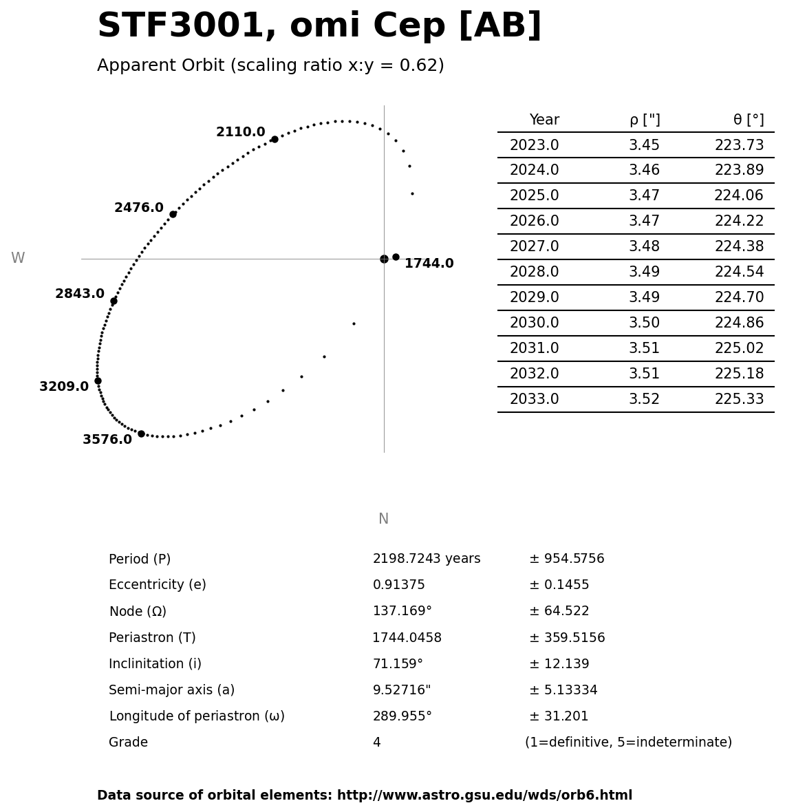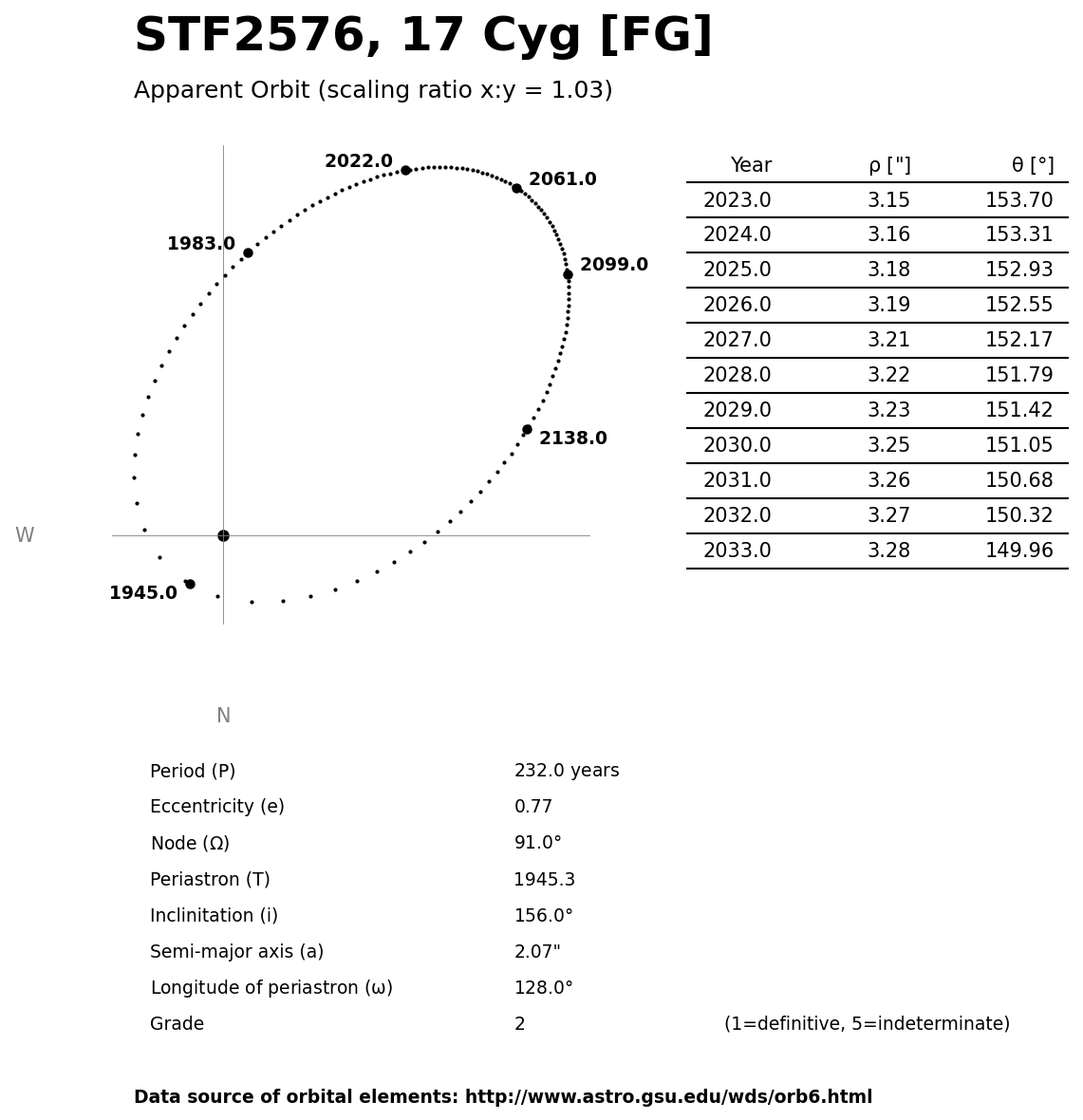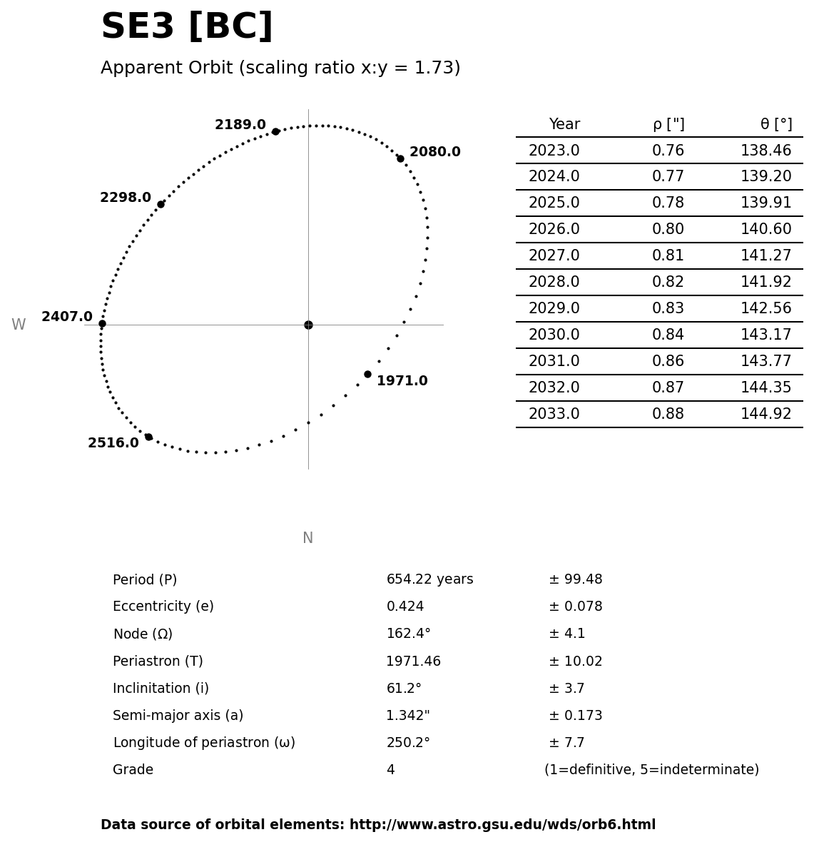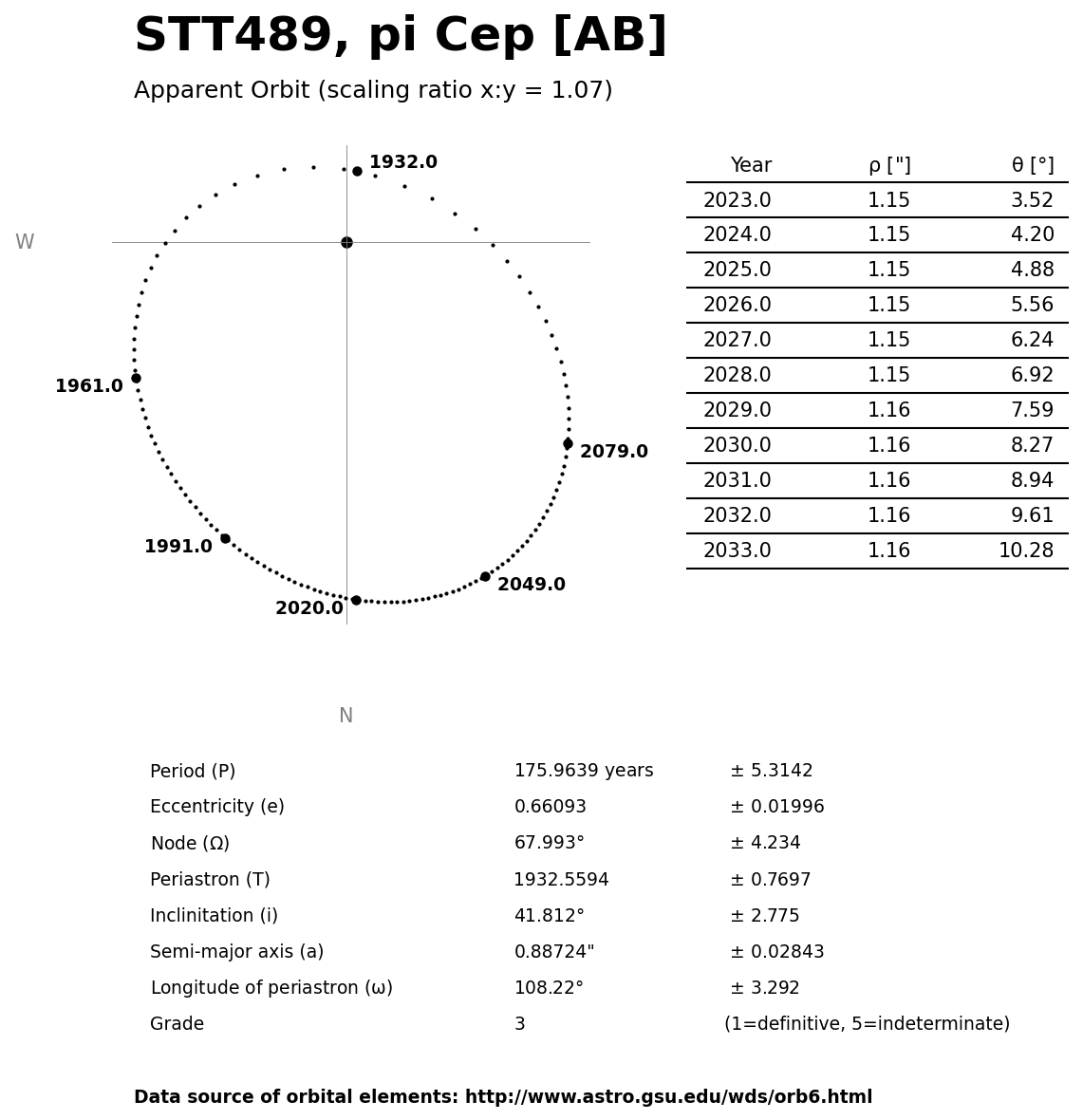 Very tough, the extraordinarily fine point of the B star appears with seeing. around 3 delta mag from light yellow A. Spectral class G0, yellow. Worth waiting for the seeing on this one. Physical with a 139.53-year period, it is slowly widening and will take another 30 years to reach apastron |