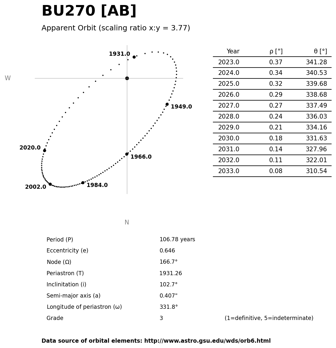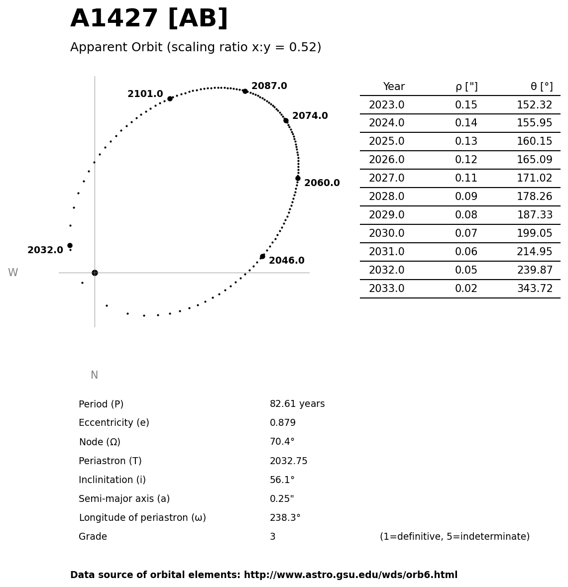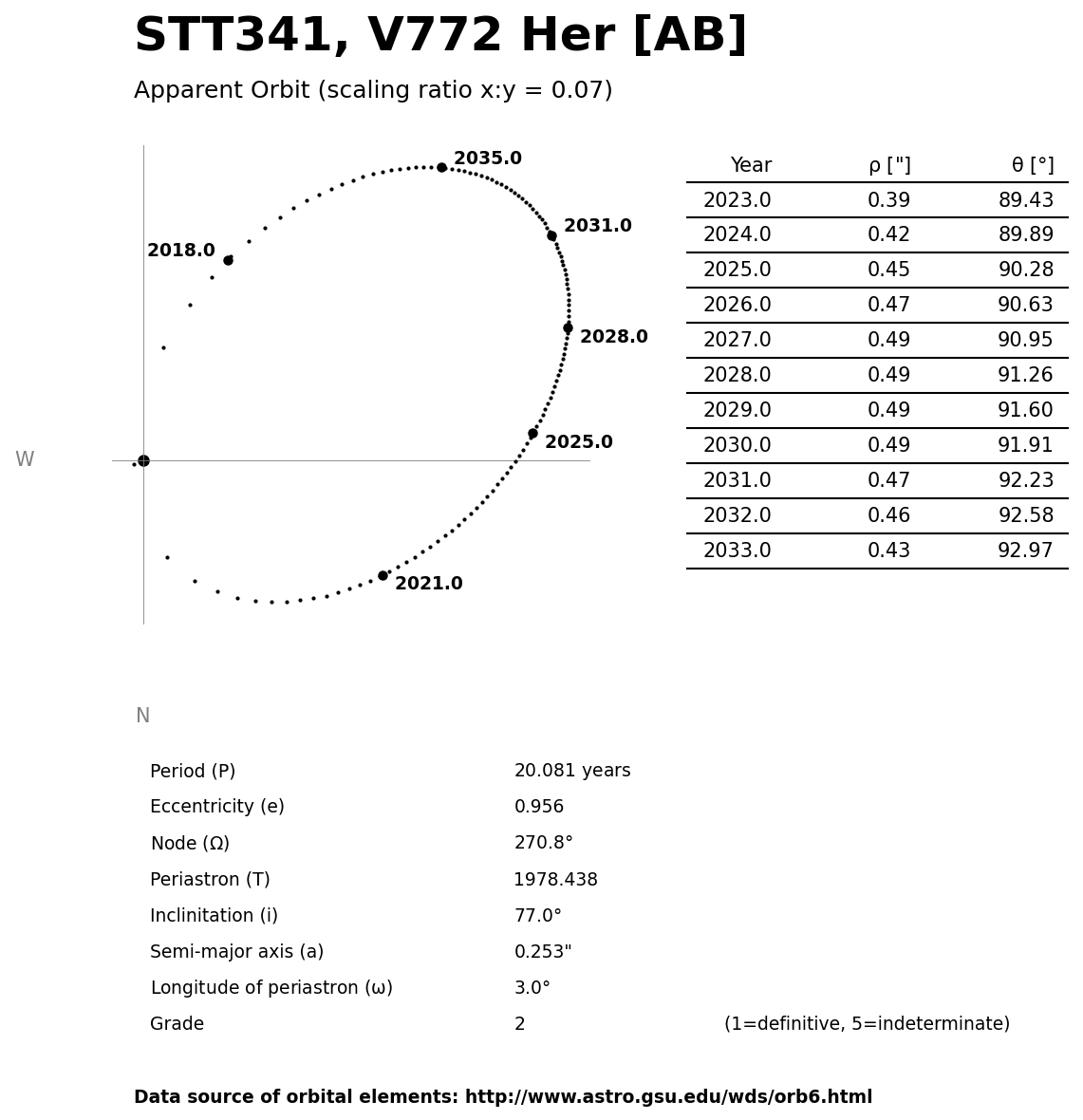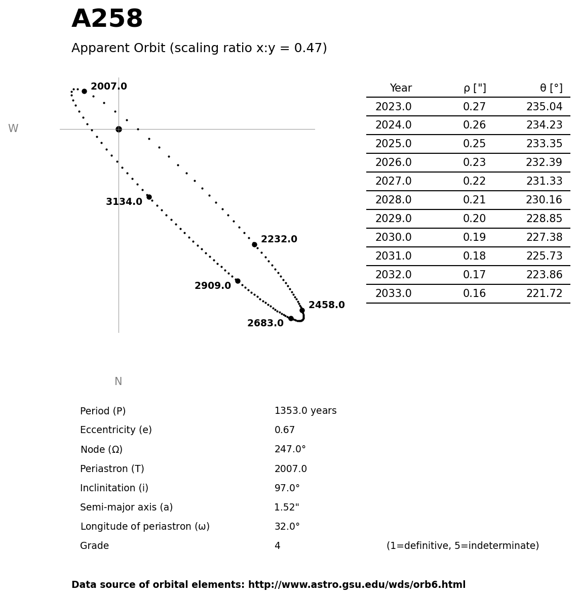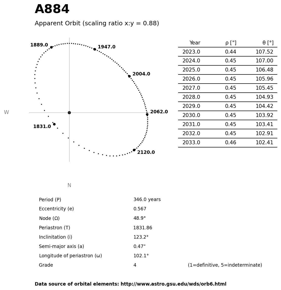 Very tough, the extraordinarily fine point of the B star appears with seeing. around 3 delta mag from light yellow A. Spectral class G0, yellow. Worth waiting for the seeing on this one. Physical with a 139.53-year period, it is slowly widening and will take another 30 years to reach apastron |