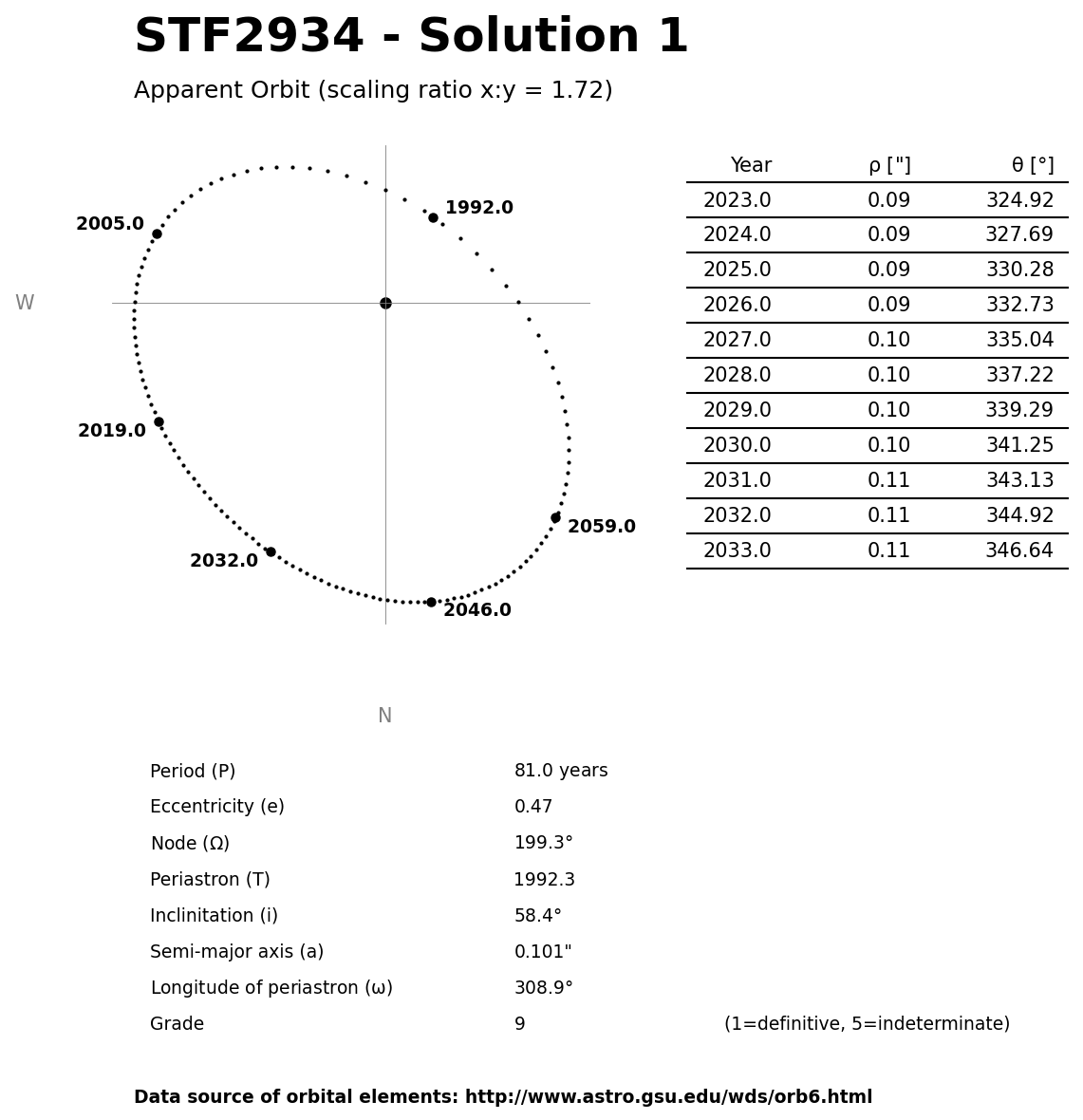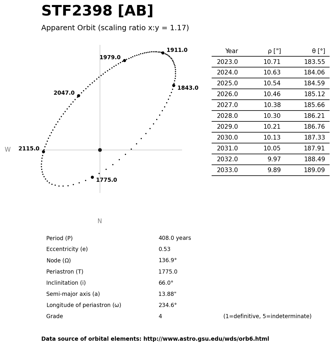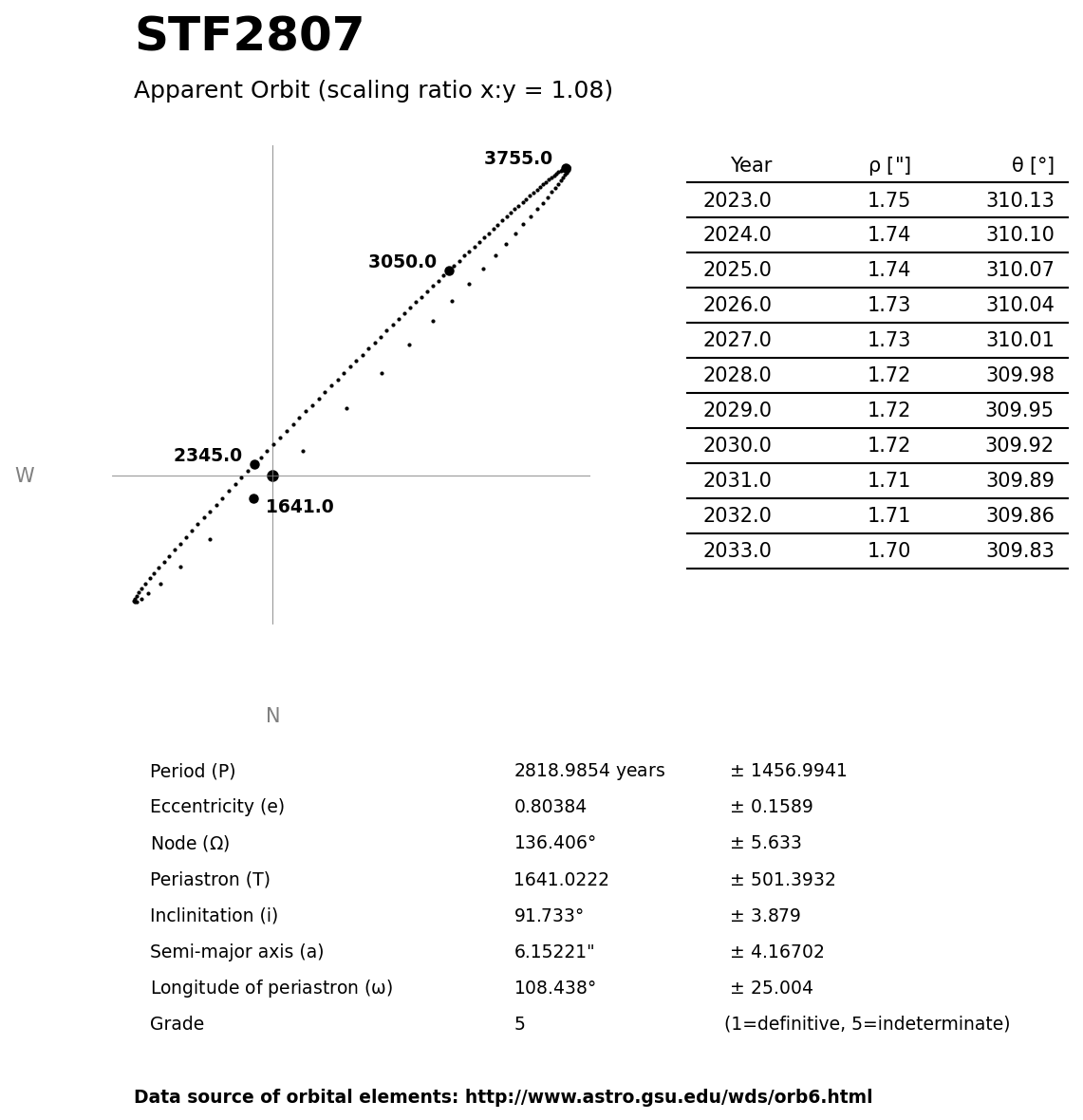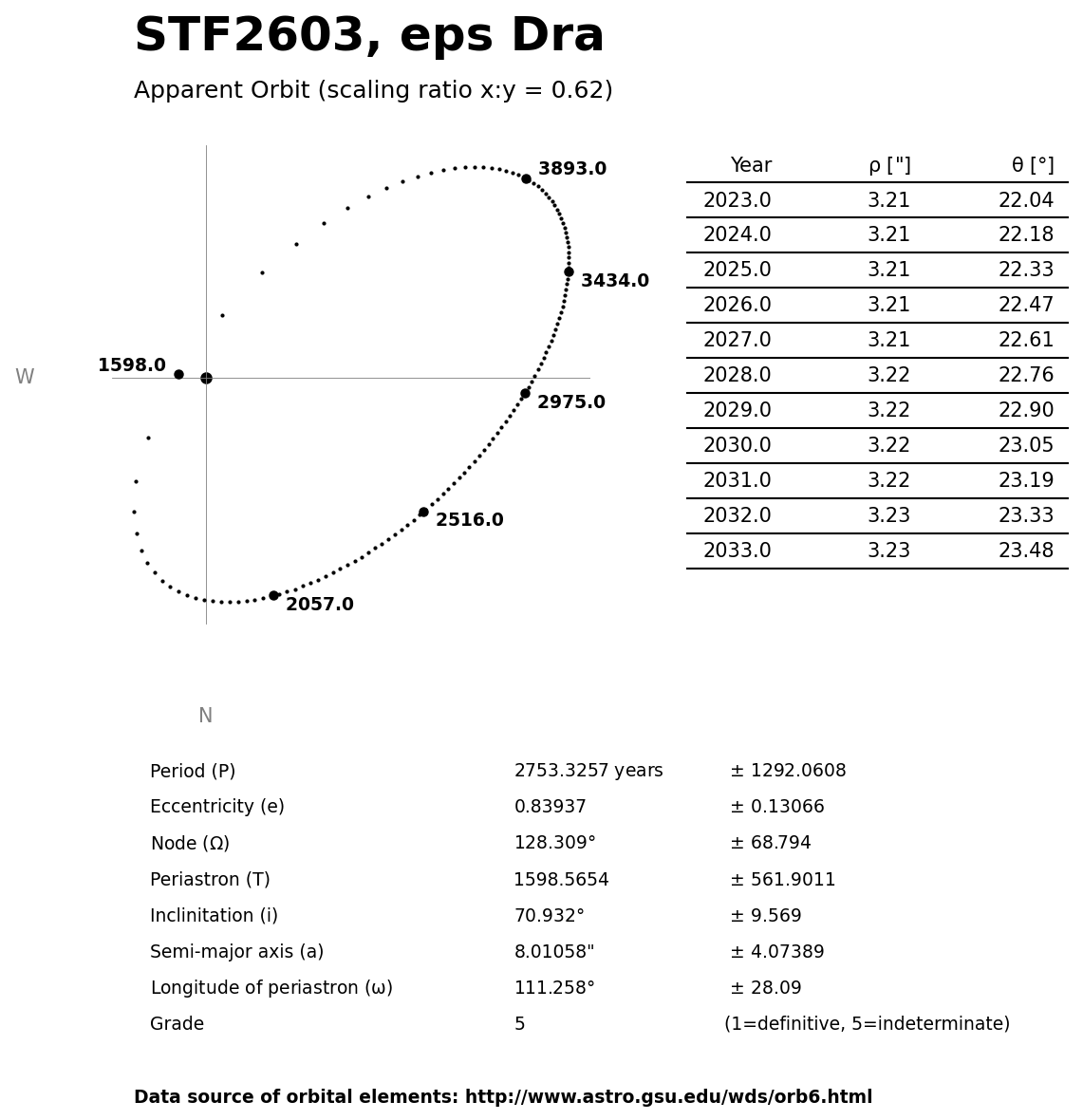 Very tough, the extraordinarily fine point of the B star appears with seeing. around 3 delta mag from light yellow A. Spectral class G0, yellow. Worth waiting for the seeing on this one. Physical with a 139.53-year period, it is slowly widening and will take another 30 years to reach apastron |
