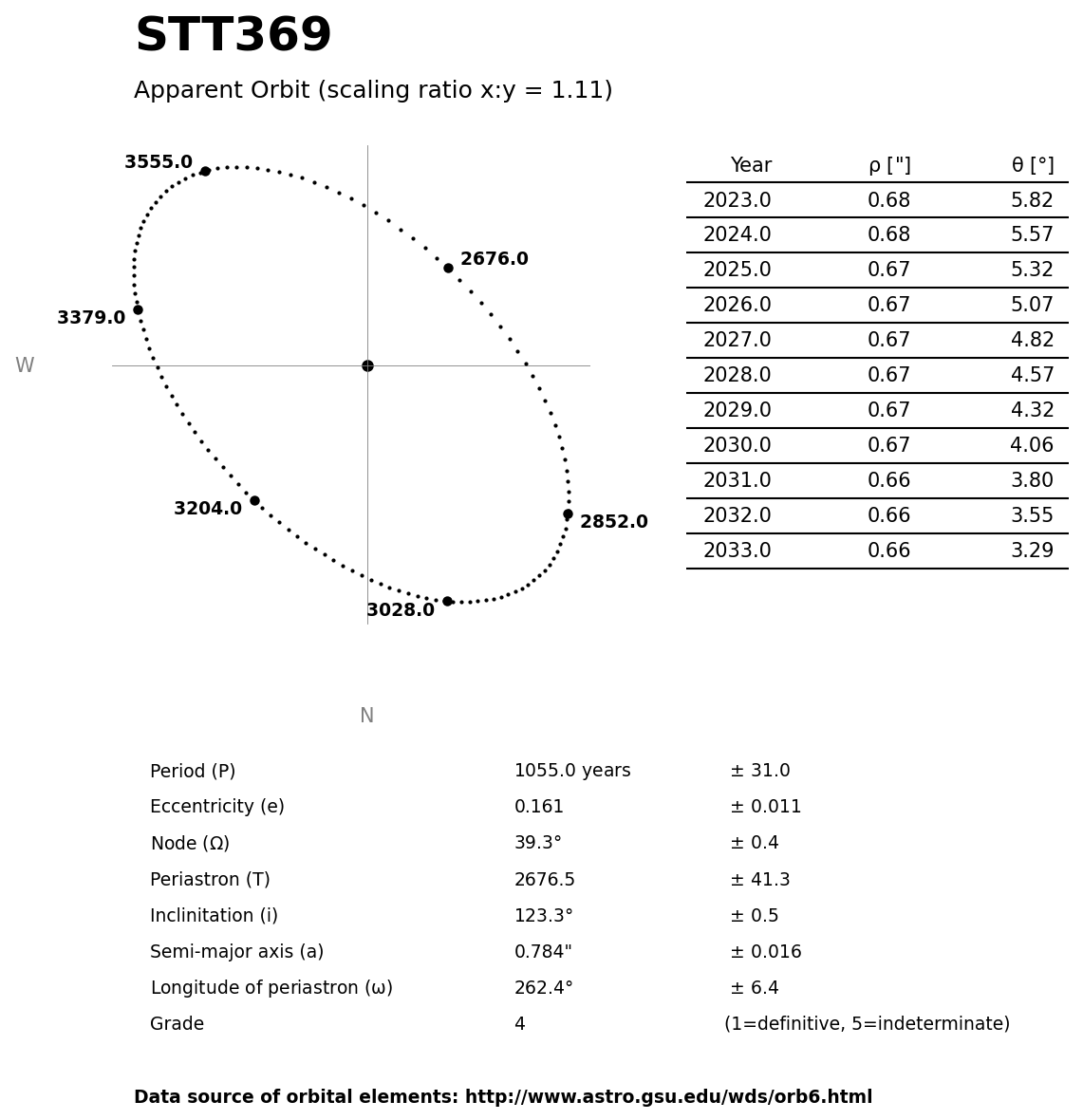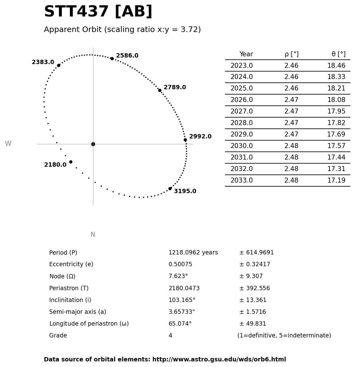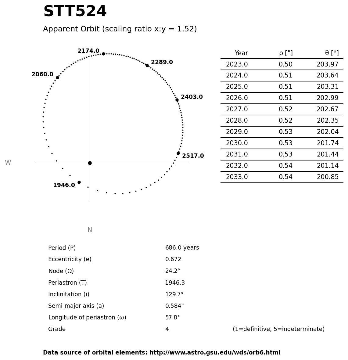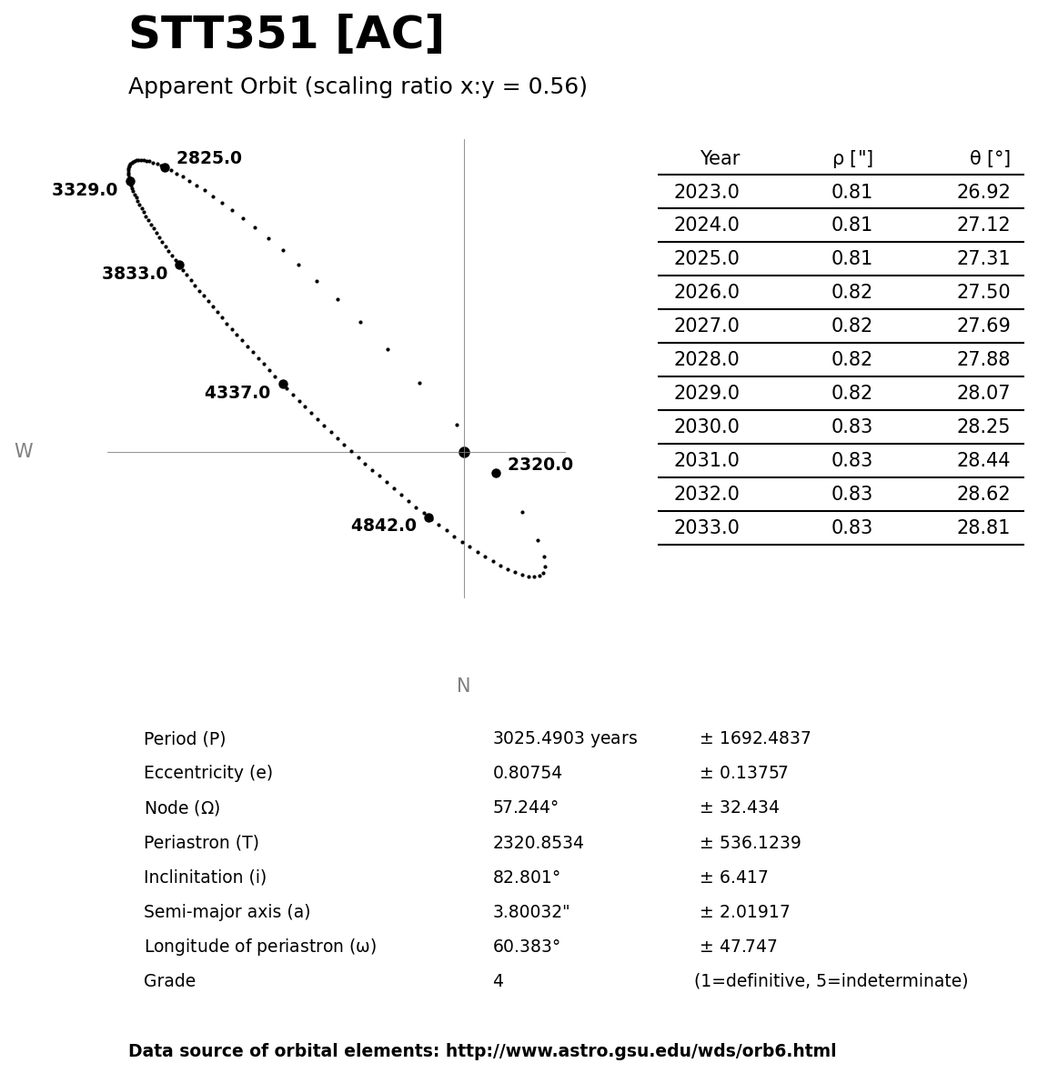 STT507 (AB): Snowman at 205x, hairline split with 333x, A is a soft white and B is light blue, ~1 delta mag. Physical with 565 year period |