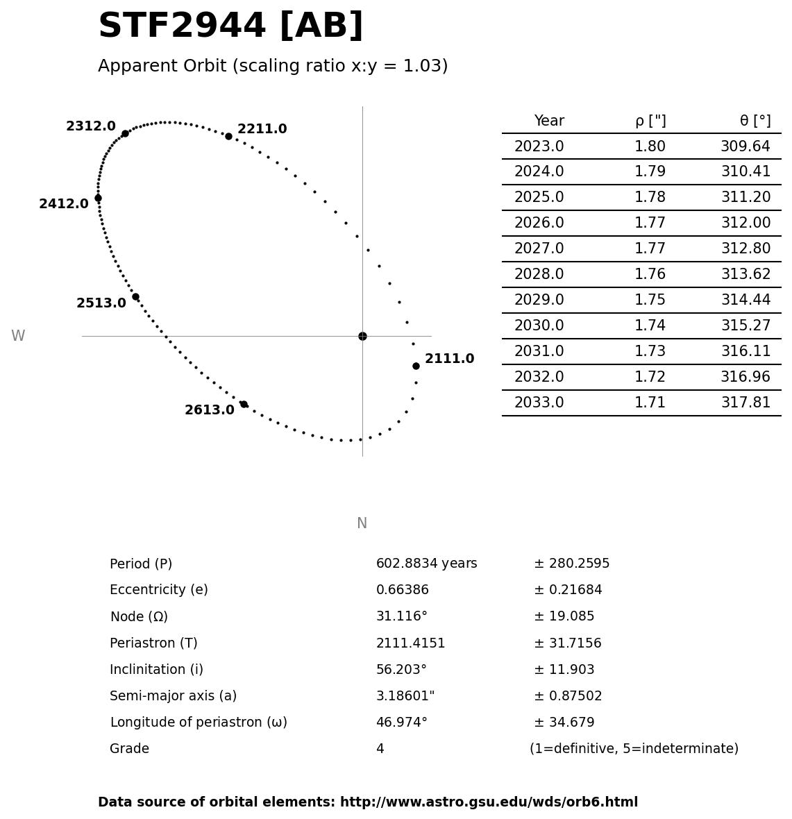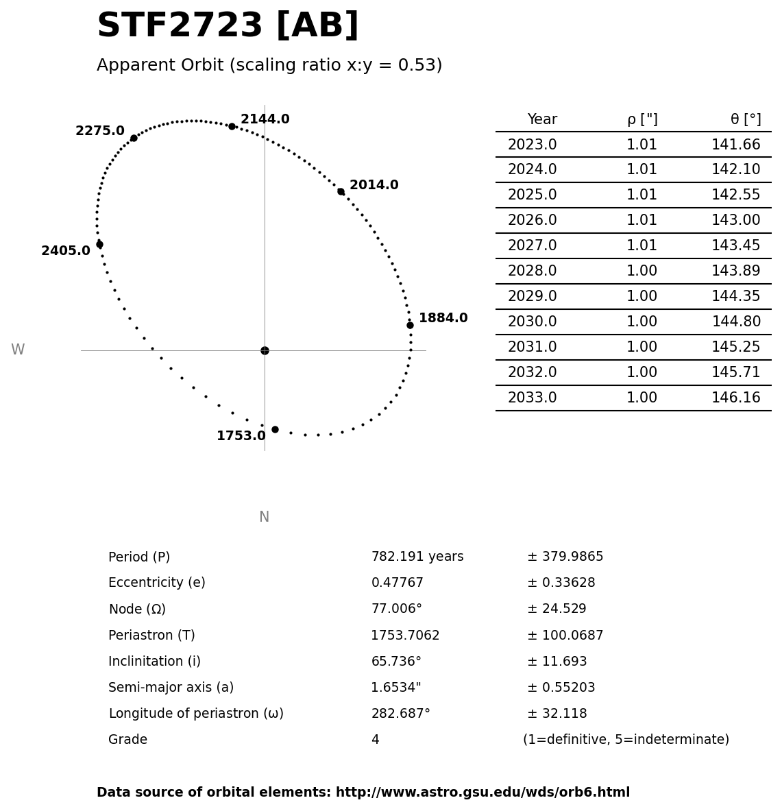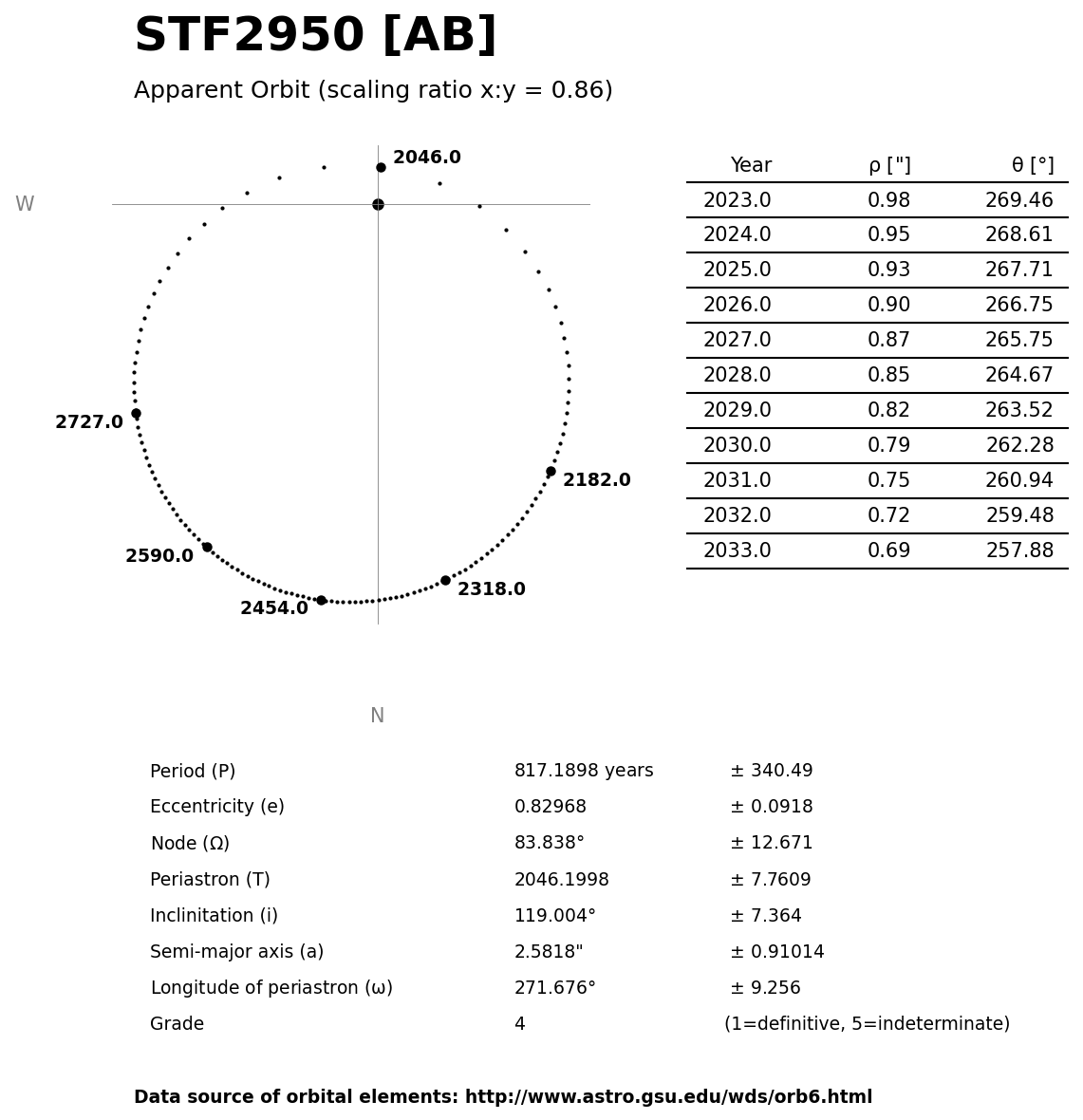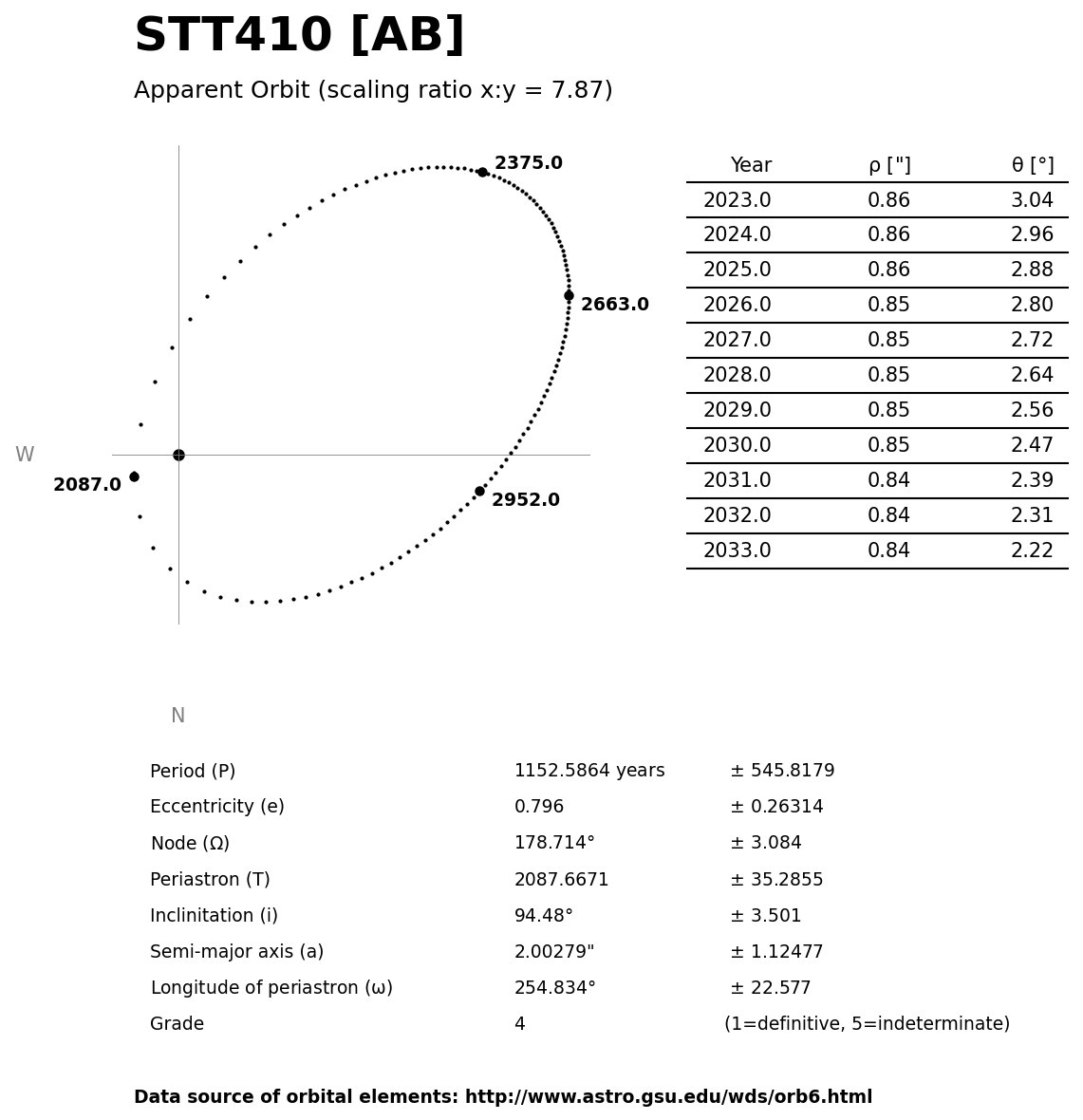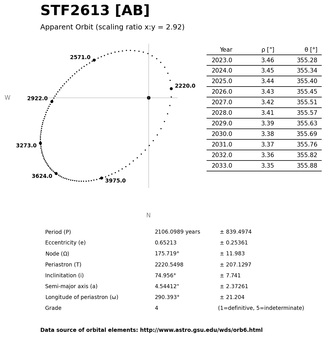 STT507 (AB): Snowman at 205x, hairline split with 333x, A is a soft white and B is light blue, ~1 delta mag. Physical with 565 year period |