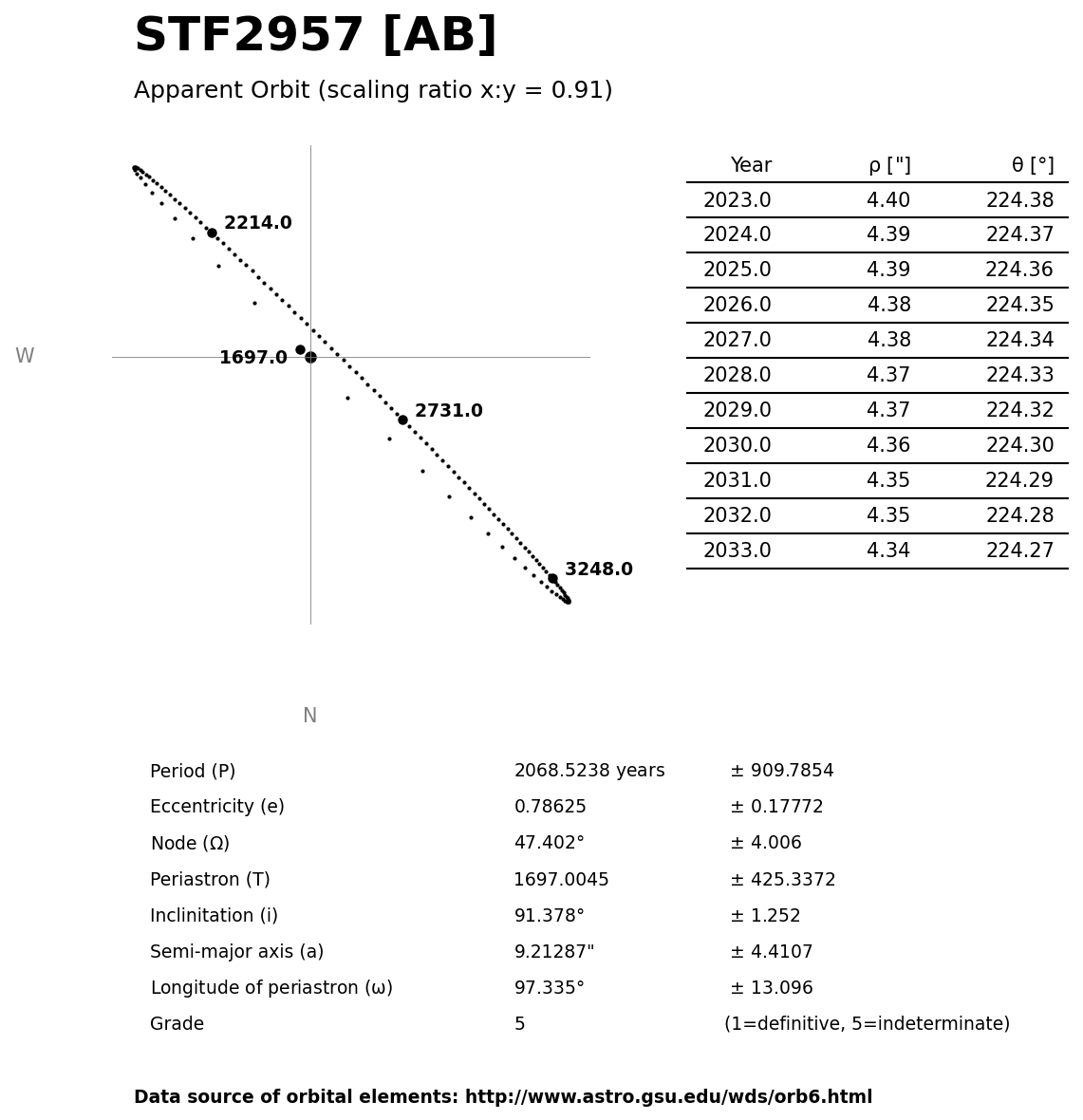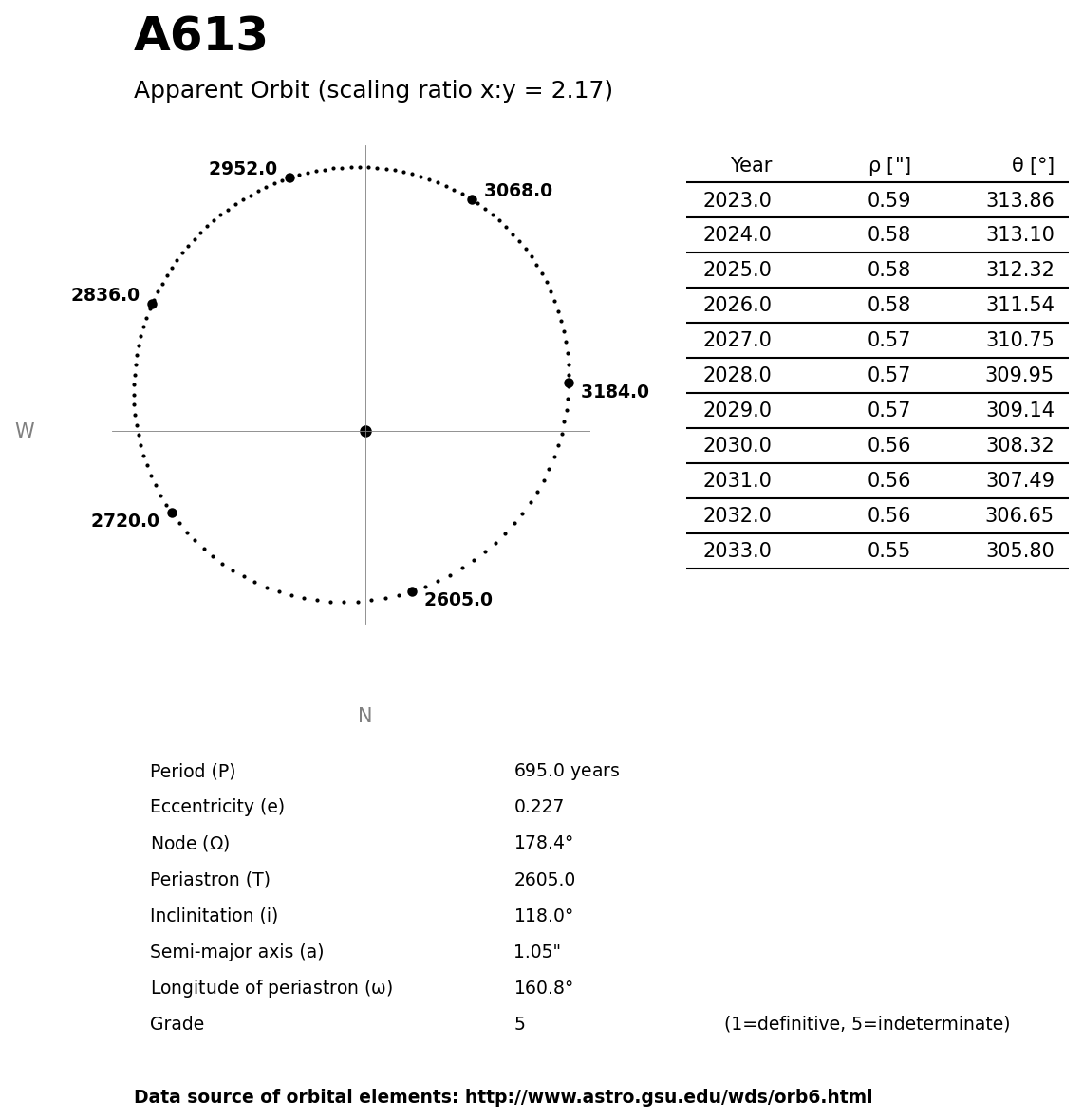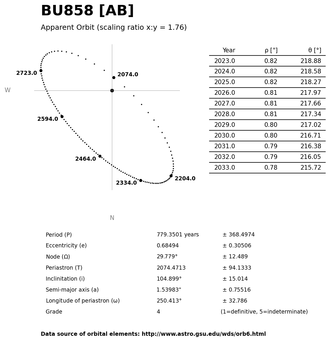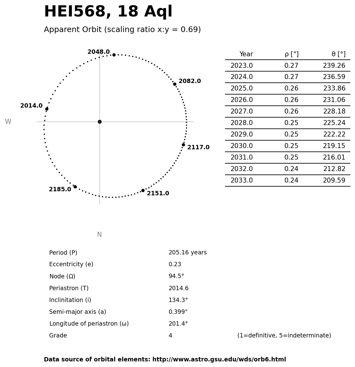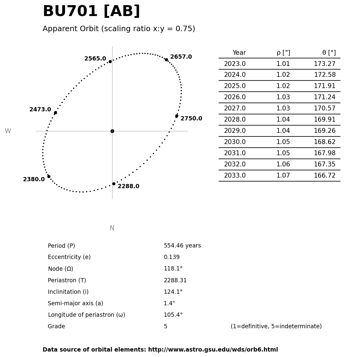STT507 (AB): Snowman at 205x, hairline split with 333x, A is a soft white and B is light blue, ~1 delta mag. Physical with 565 year period |