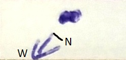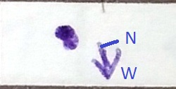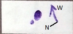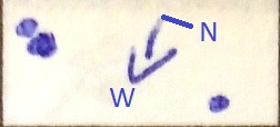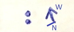 AB: Trennung einfach, aber die B-Komponente ist nur schwach erkennbar südwestlich von A - Helligkeitsunterschied 2.5 bis 3 Magnituden |