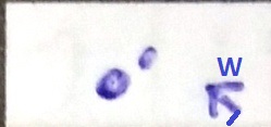 Bei 125x sind zwei sich überlappende Beugungsscheibchen mit geringem Helligkeitsunterschied erkennbar. Bei 160x etwas besser und beinahe getrennt sichtbar. |