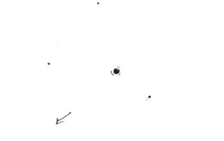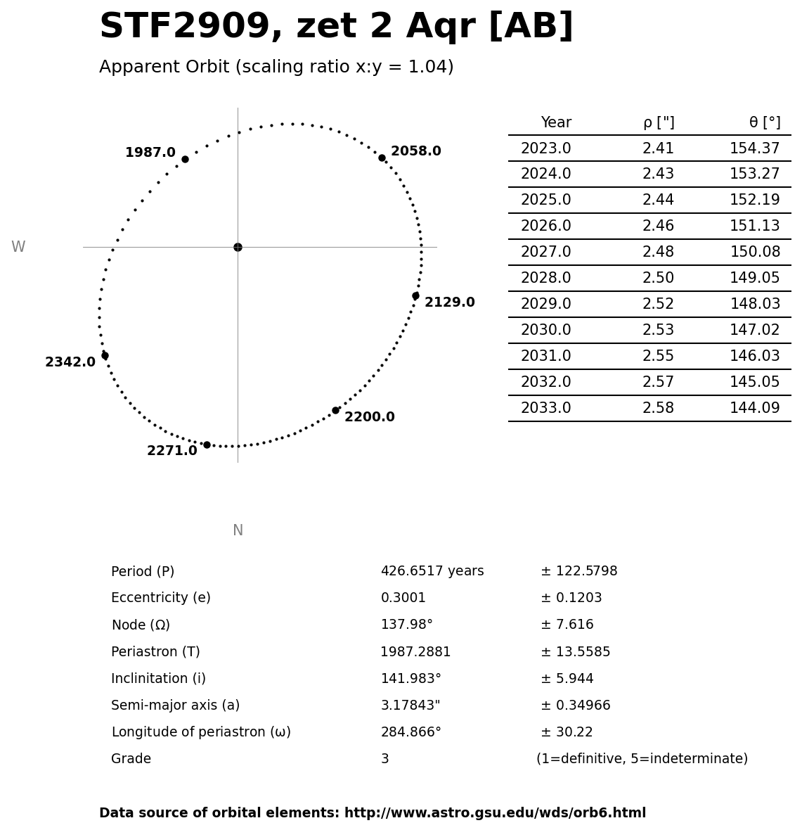 A-BC: Sehr weit getrennt aber noch als zusammengehörig empfunden. BC ein einzelner feiner Lichtpunkt. Attraktiv zusammen mit STF2993 im Gesichtsfeld von 1,6°. Psi1 Aqr und STF2993 stehen an Januarabenden auf gleicher Horizonthöhe, eine hübsche Konstellation. |