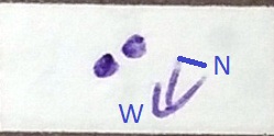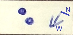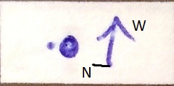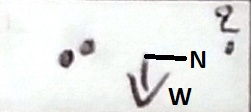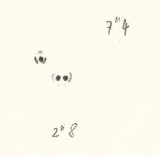 bei 32x gut getrennt, Komponente B im Westen etwa eine viertel Magnitude schwächer - auch bei 20x noch sehr ansehnlich, beide Sterne stehen gut getrennt eng beieinander |