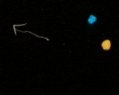 AB: ein sehr auffälliger Doppelstern mit einem schönen Farbkontrast - A strahlt gelb, das kurz davor steht, ins Orange über zu gleiten - B wirkt im Kontrast aquamarin, so dezent wie eine typische PN-Farbe |