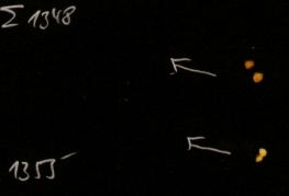 ui, schön! Ein sehr enges Pärchen, bei 136x ganz knapp getrennt, zwei winzig kleine, gleich helle Äuglein nebeneinander |