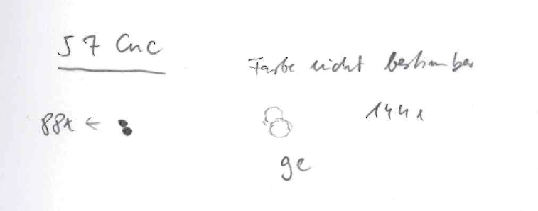 AB: Mondscheinbeobachtung - bei 29x ein weit getrenntes Pärchen, bei dem die A-Komponente nicht durch Strahlkraft, sondern durch seine auffallende Farbe besticht, ein sehr kräftiges Kupferorange - es gibt hellere Sterne im Umfeld, aber diese Komponente fällt besonders auf - die B-Komponente ist gut 1.5 mag schwächer und wirkt grau bis graublau |